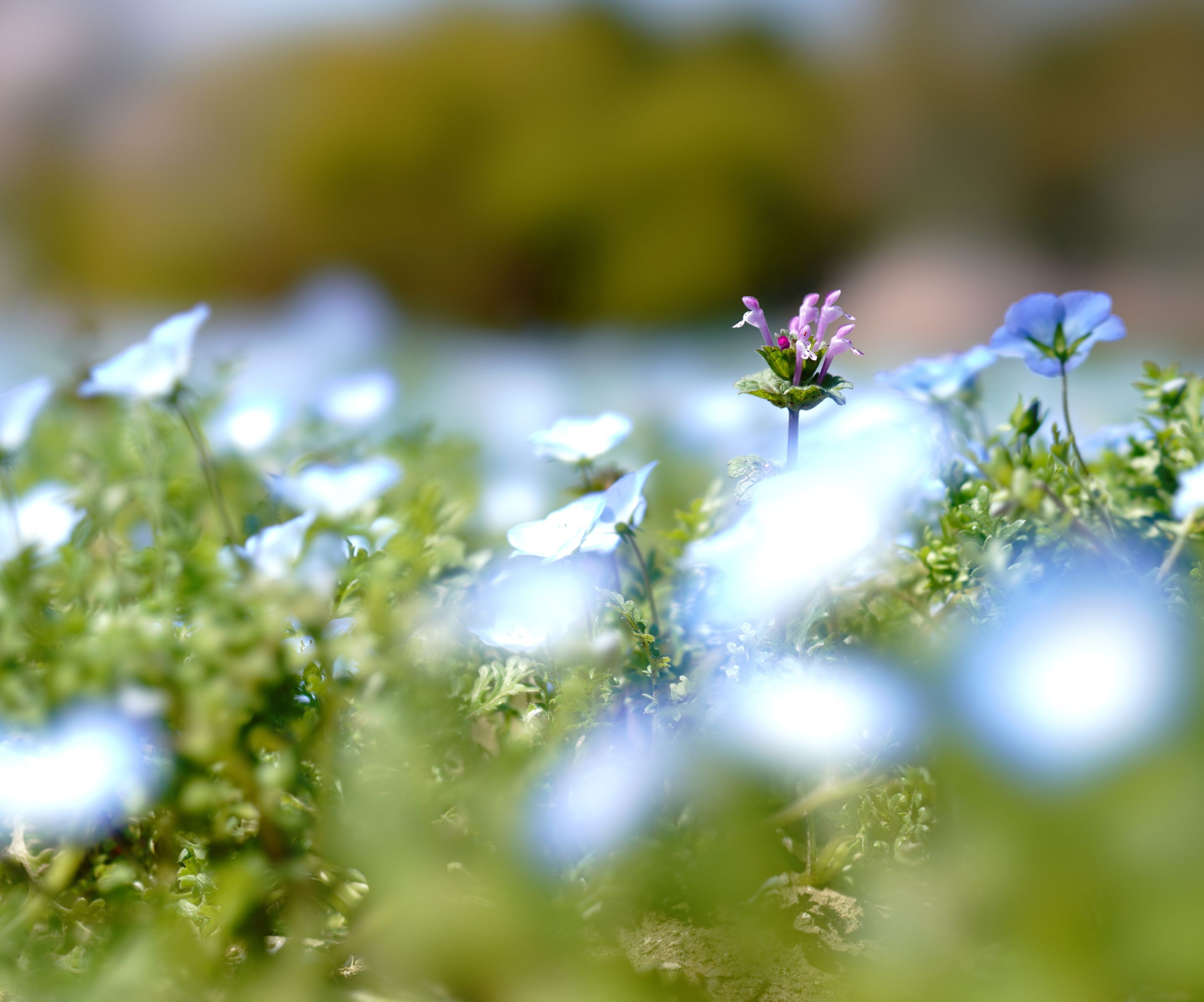 ネモフィラ畑のホトケノザさん、 なんか健気( *´艸`)♬