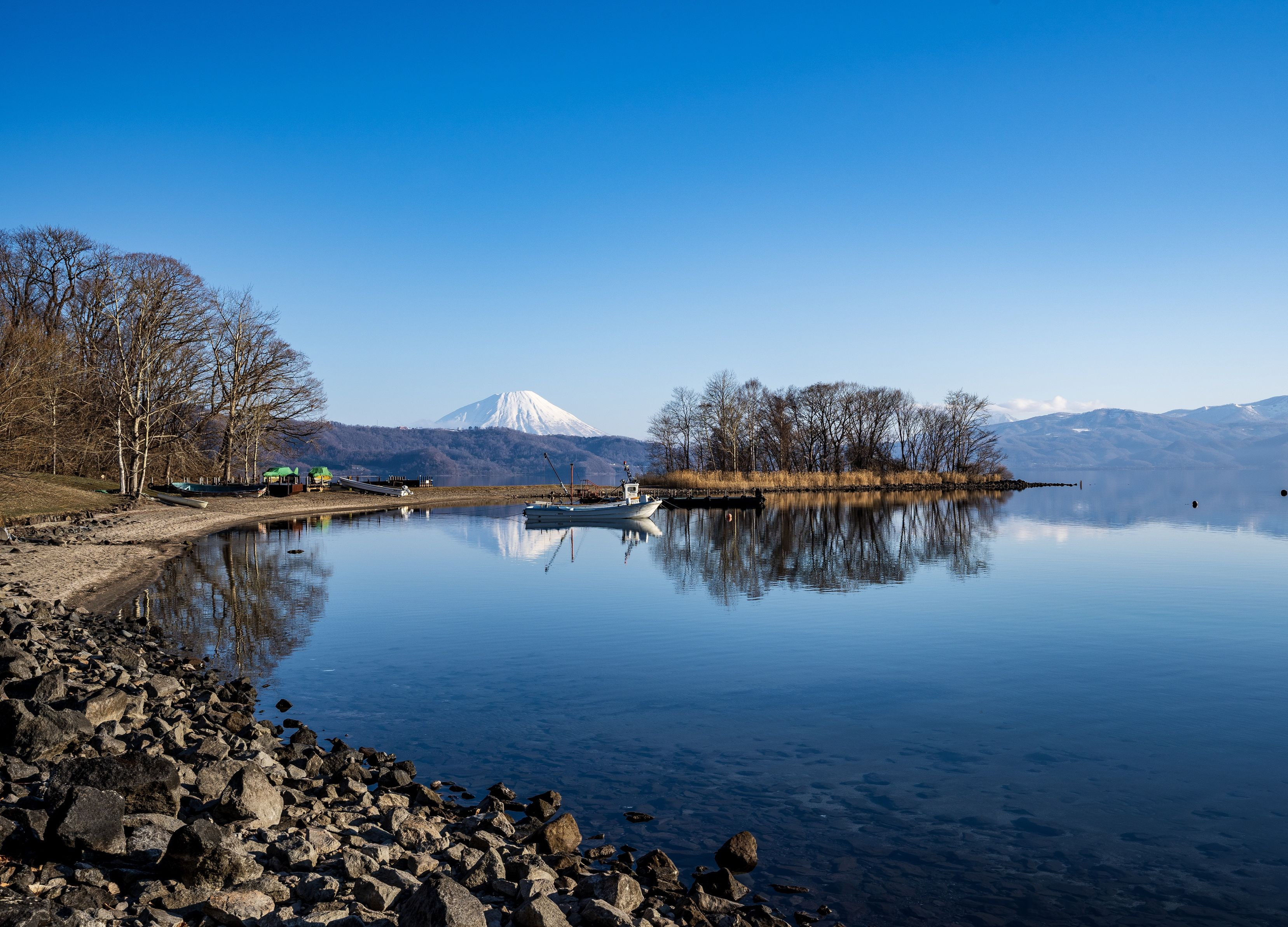 この日の洞爺湖は最高の天気で湖面が鏡に!