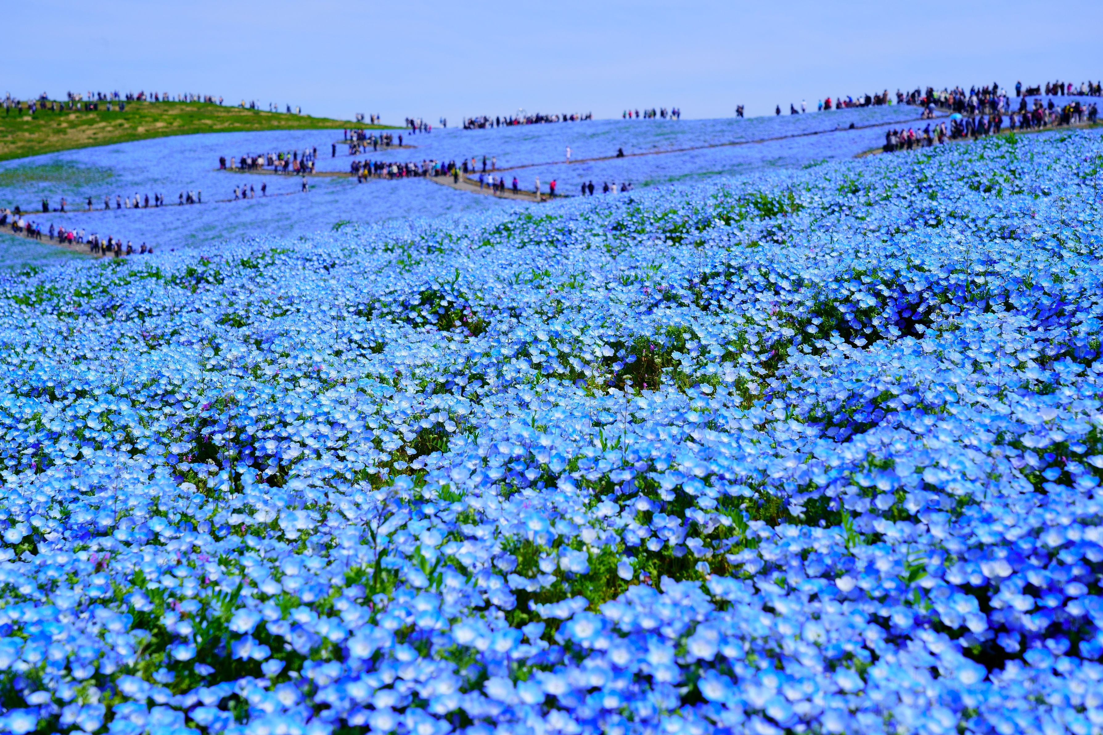 一度見たいと思っていた丘一面瑠璃の色のネモフィラは絶景でした。幸い天気にも恵まれました。より広角ならここの壮大感ももっと表せたのでしょうが、これで一杯でした。