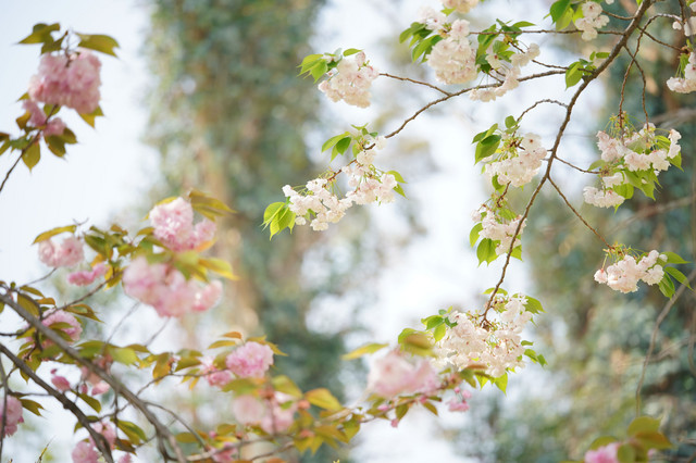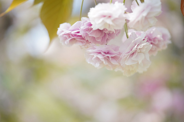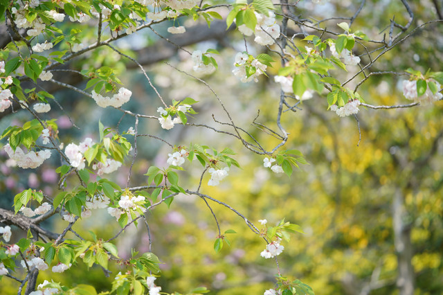 落花さかんな八重桜、はかなげな枝ぶりもいとおしい 長居植物園 voigtlander110/2.5macro