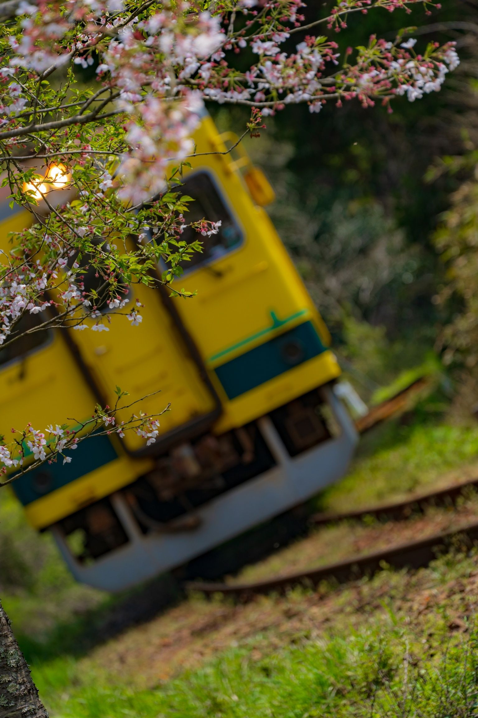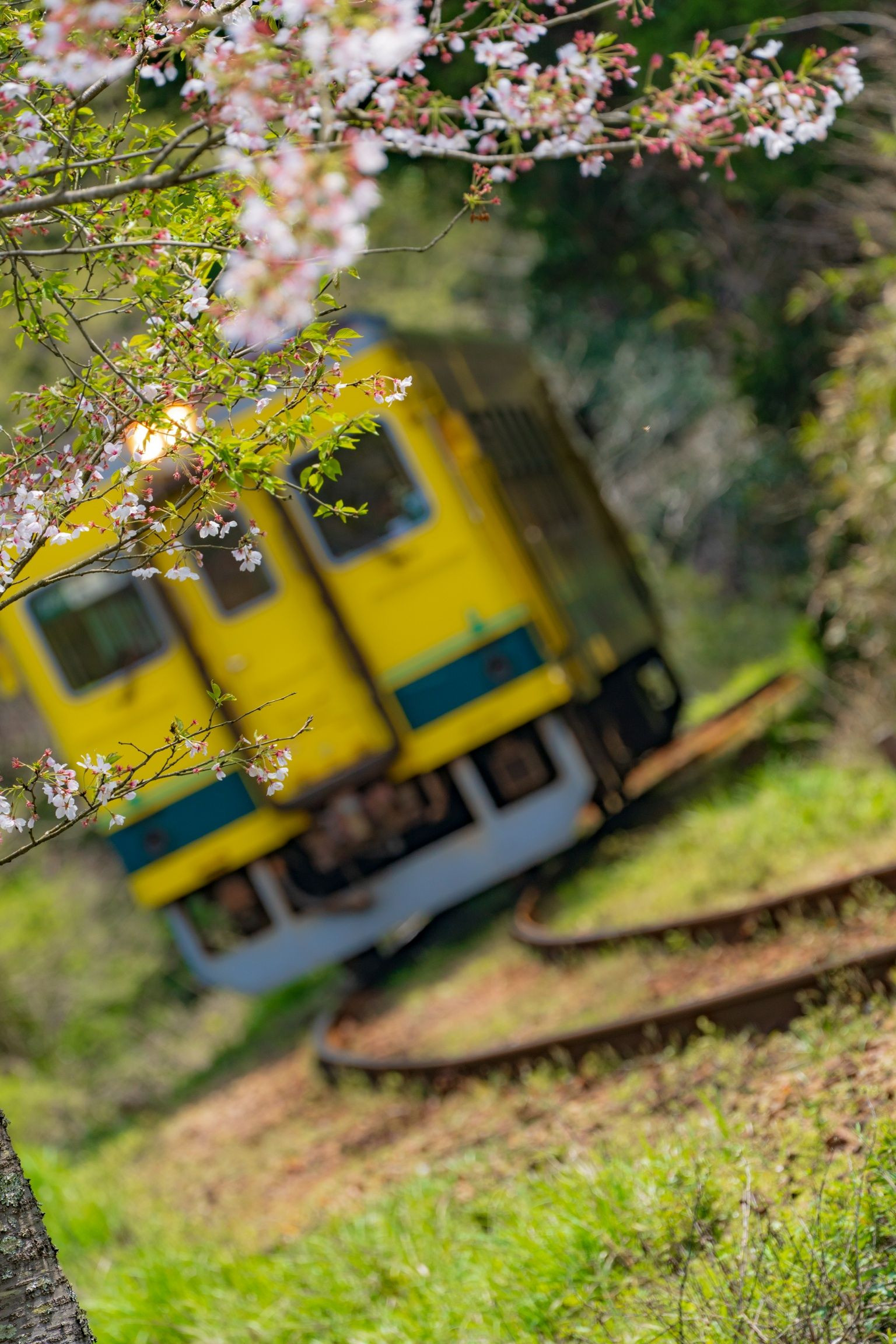 線路と桜を撮ろうとしていたところ、タイミングよく電車が来てくれまして 凄い焦って撮りました(^^;;
