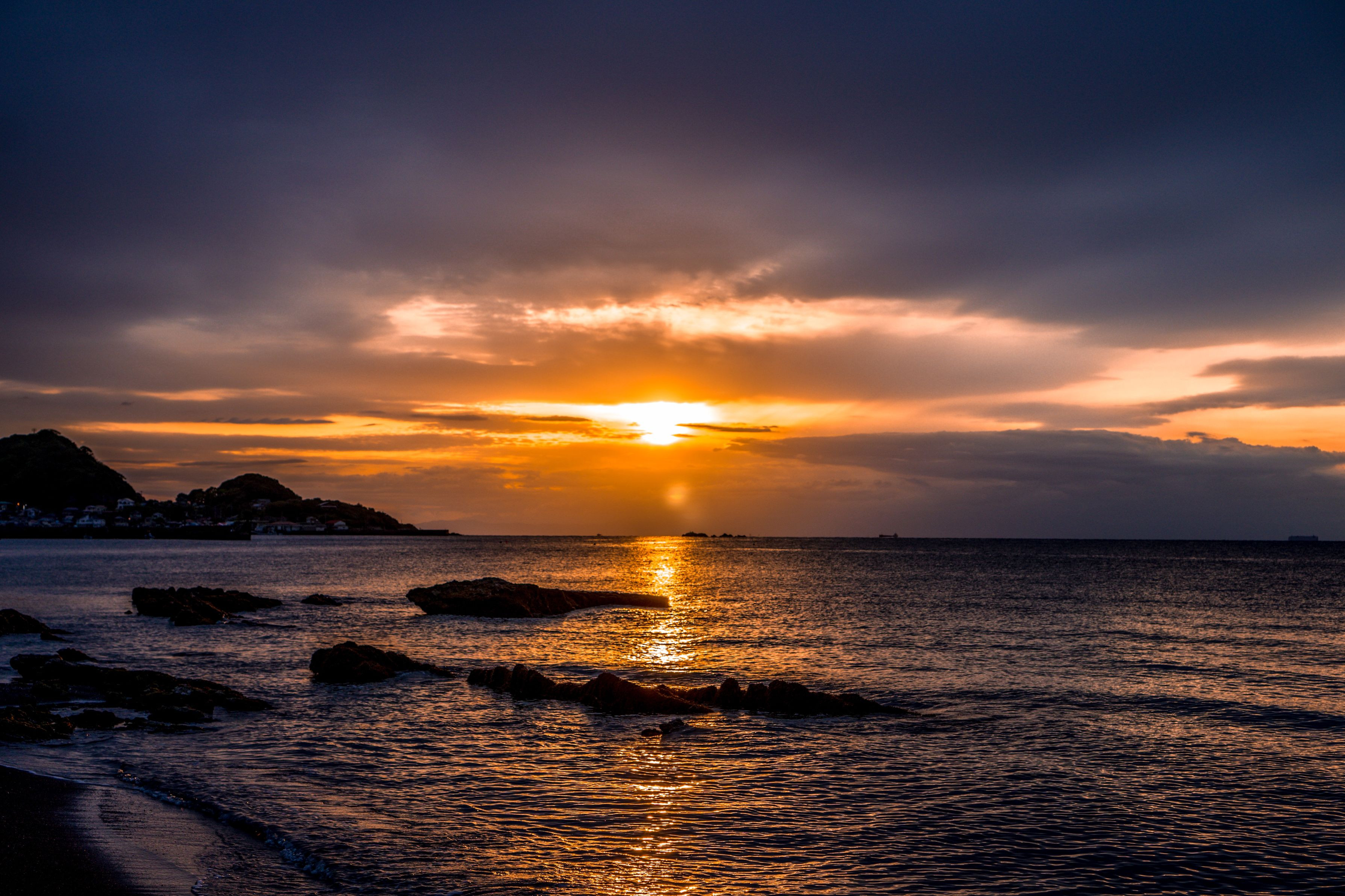 南房総館山の海岸からの夕日です。