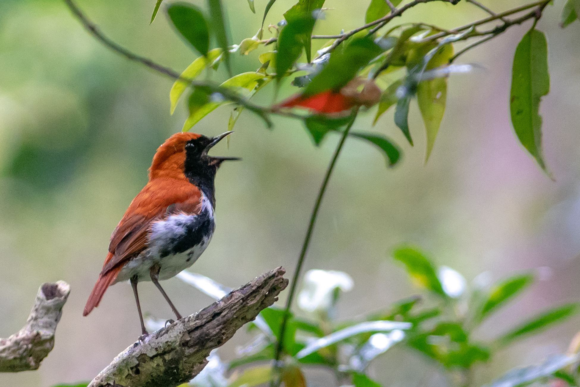 小雨降る奄美で、爽やかにさえずる亜種#アカヒゲ#です。 なかなか出てきてくれませんでしたが、やっと姿を見せてくれました。(*^-^*) -ヨンヨンゴで-