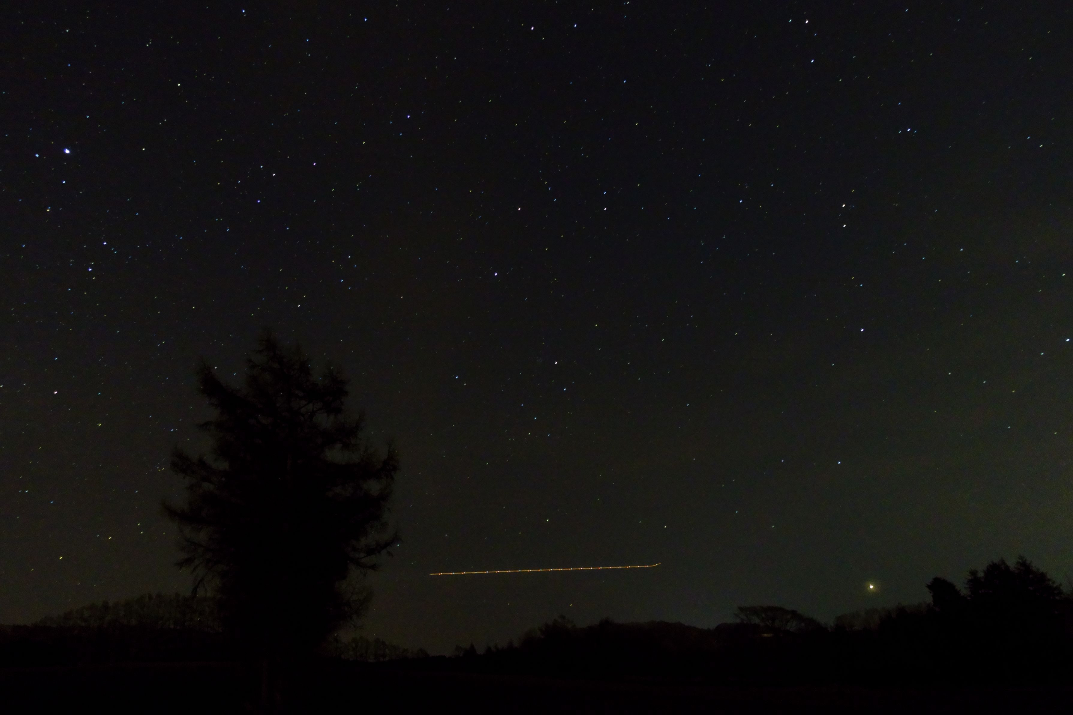 長沼で星撮ってたら飛行機が来て銀河鉄道っぽく撮れて興奮しました。