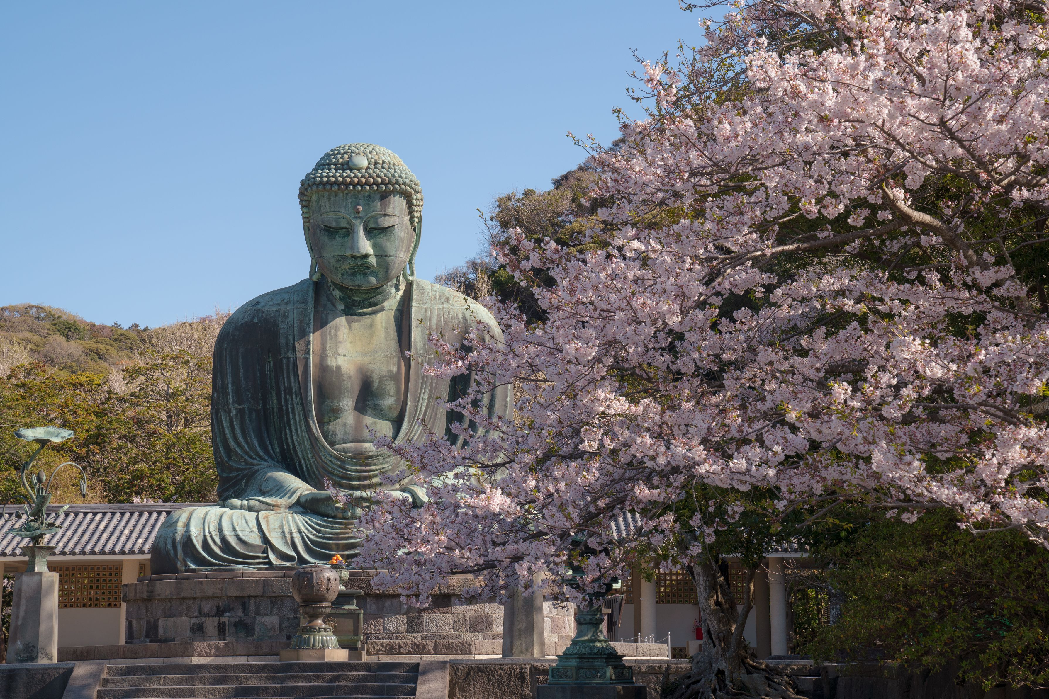 ②鎌倉大仏の桜 外国人に大人気の鎌倉大仏