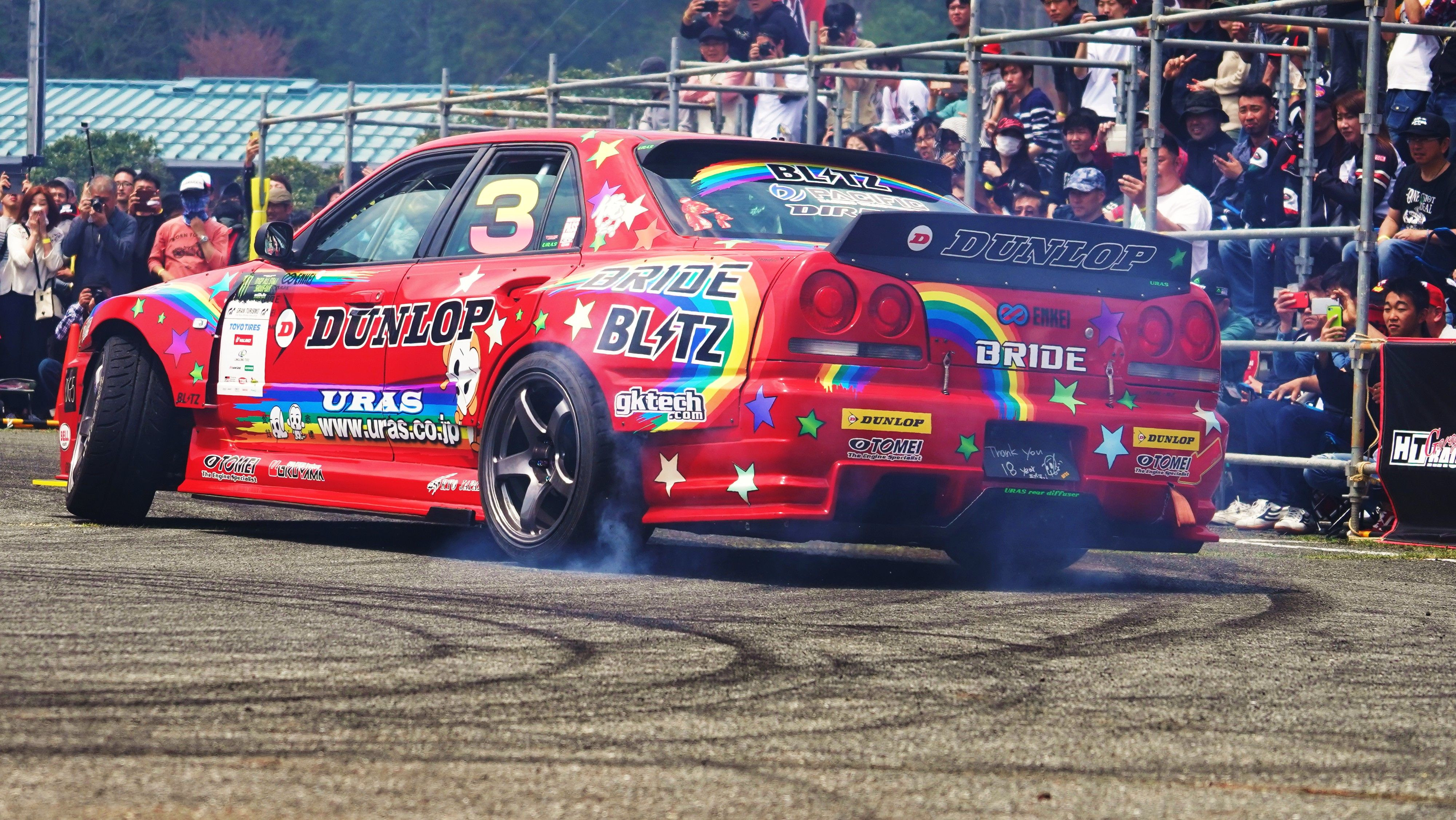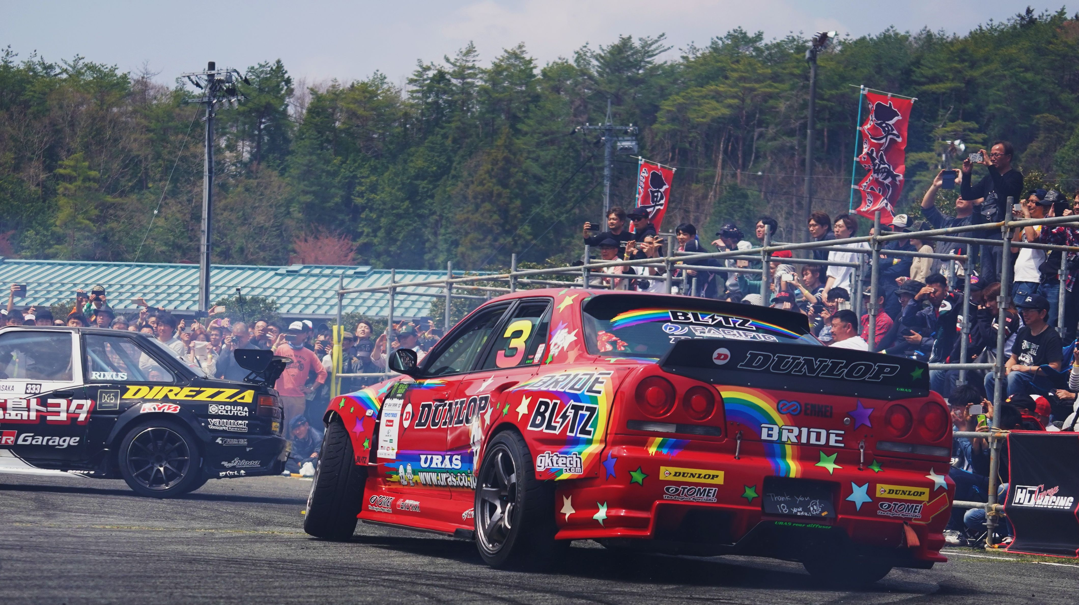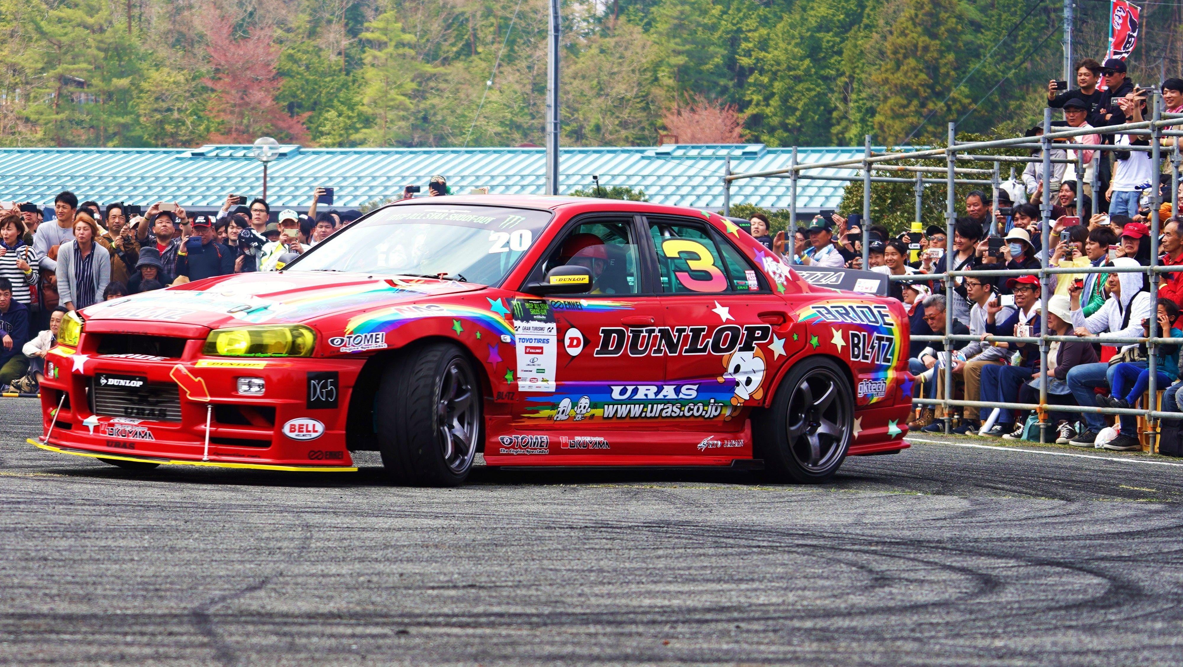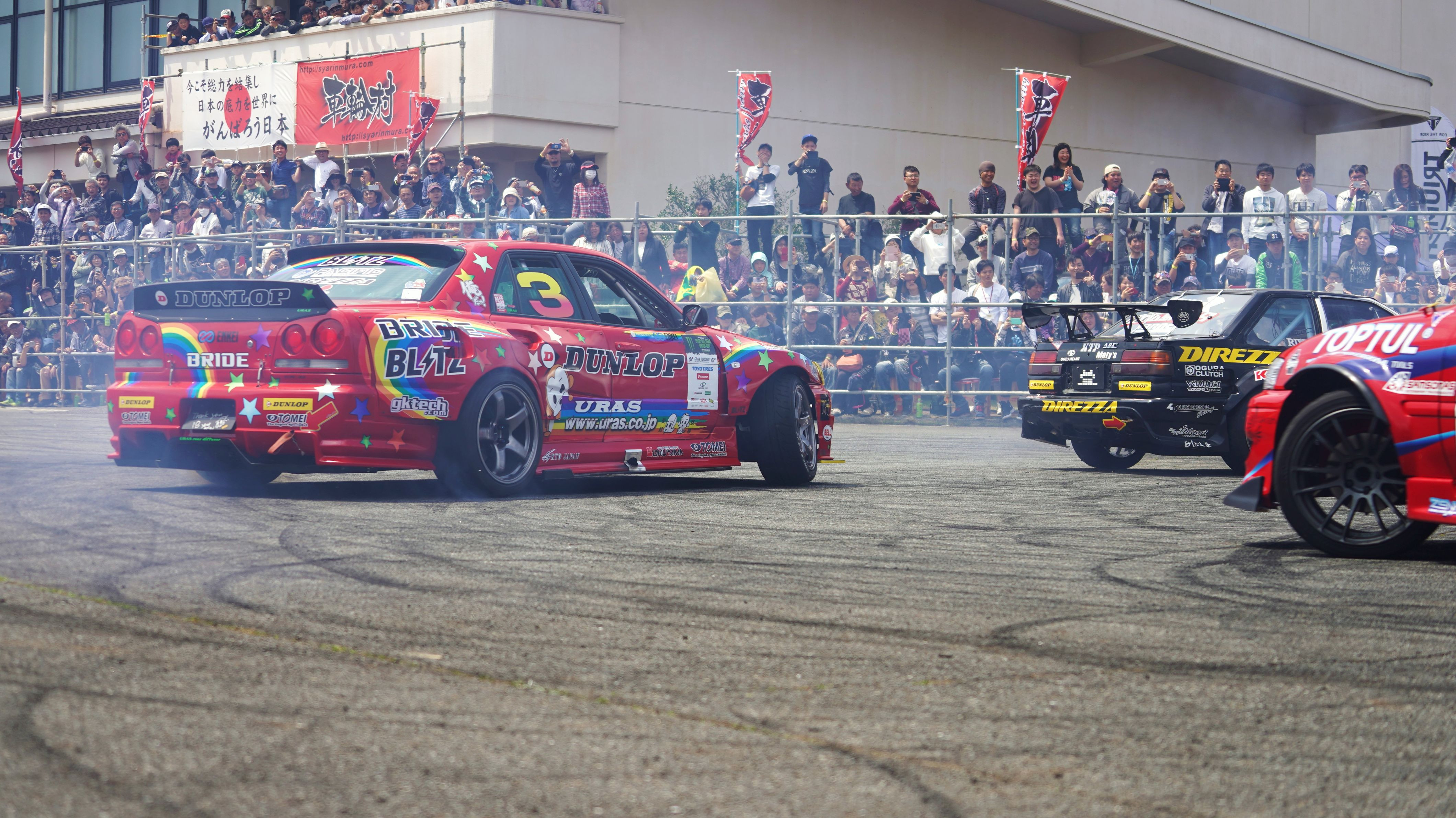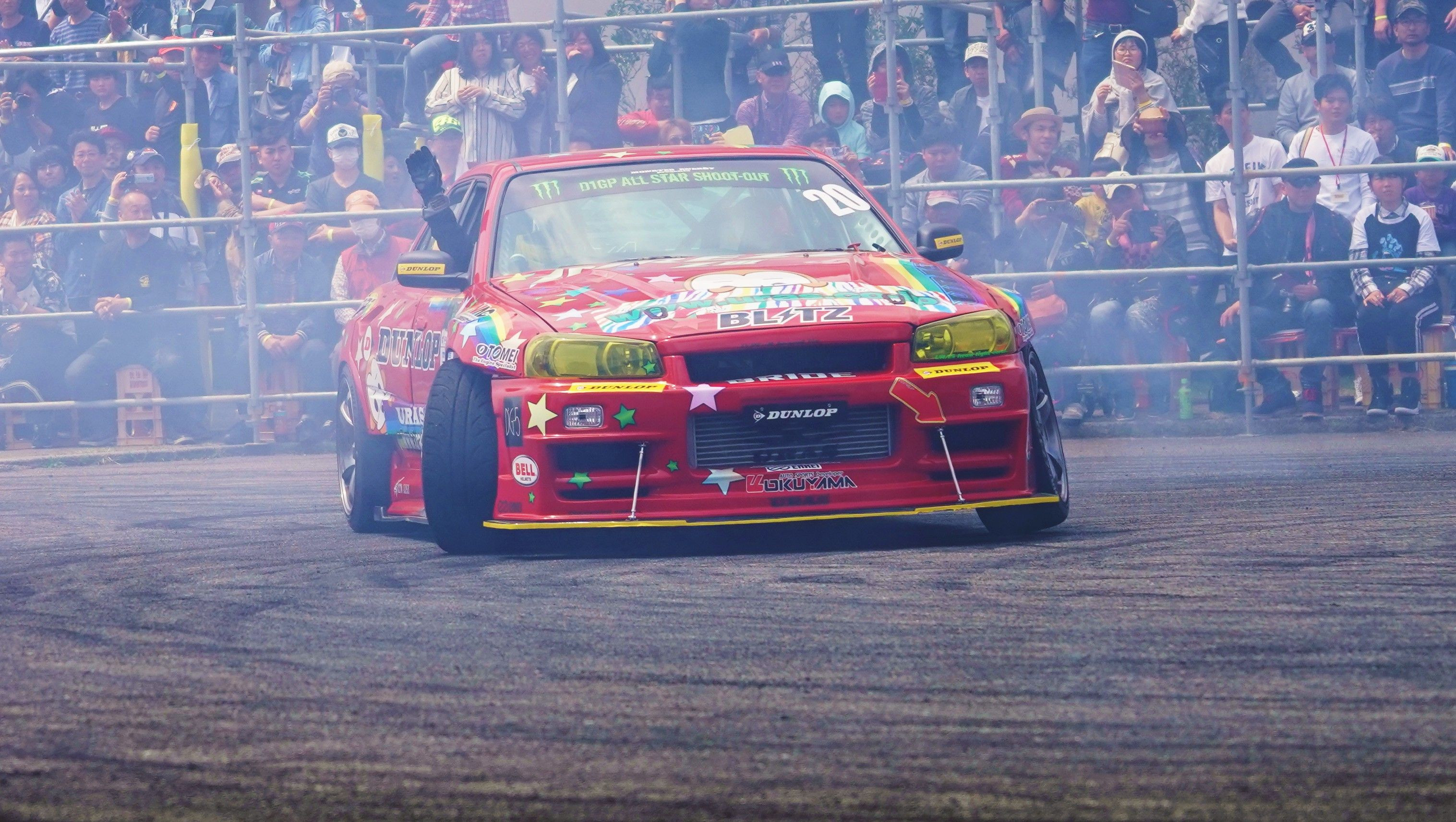 流石の廣島! 車好きにも程がある!! 車輪村 という ド派手なパフォーマンスが売り の イベントです。 先ずは ドリフト・パフォーマンスです。 去年 D1引退した 野村 謙 も 参加しています。