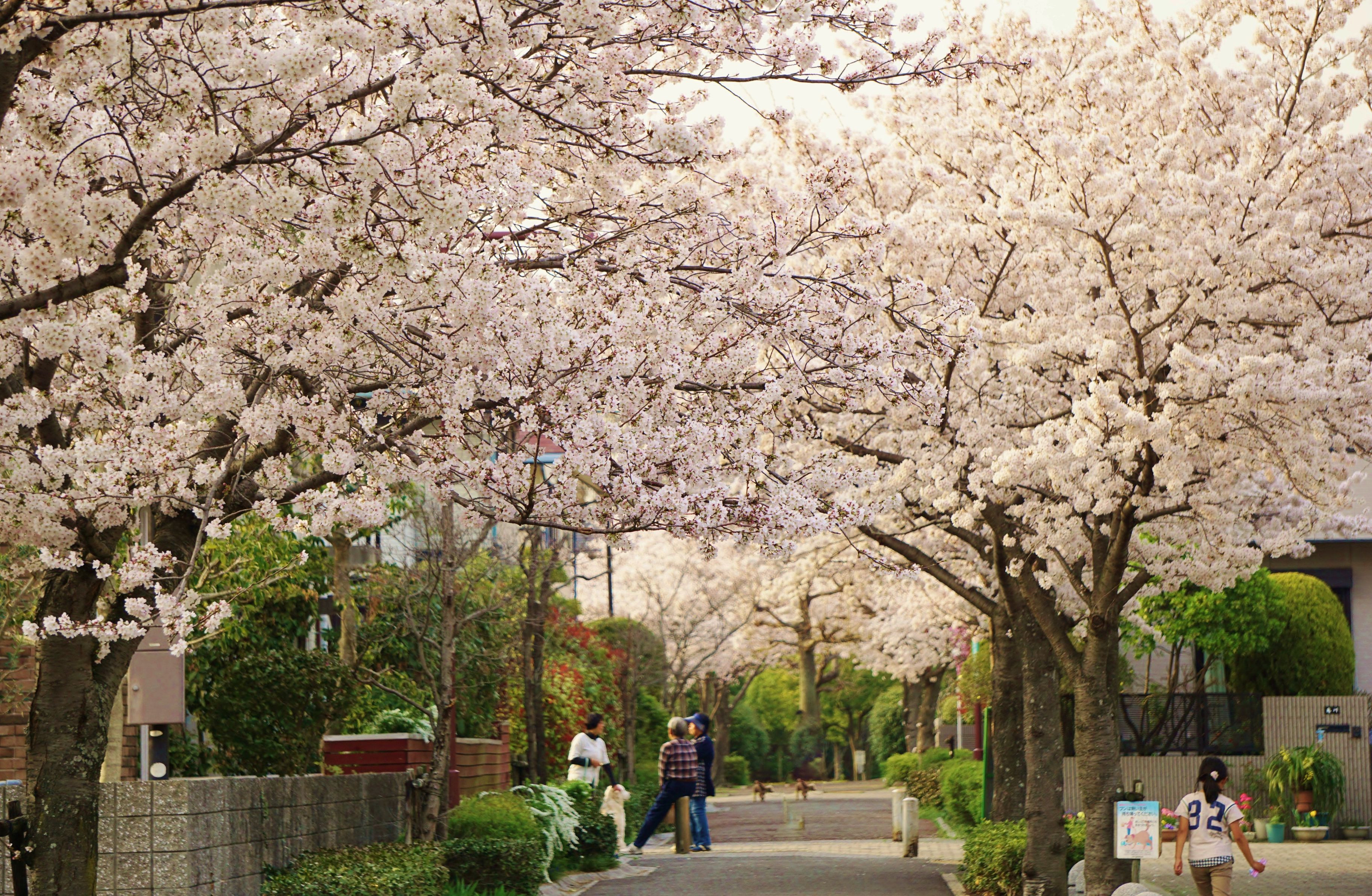満開の桜の下で楽しそうにおしゃべりをしているお隣りさん同志とてものどかな風景でした。