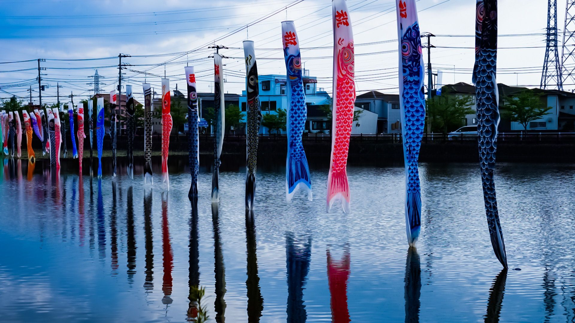 無風でしたので、元気に空を泳ぐ鯉のぼりを見ることが出来ませんでしたが、色鮮やかで素晴らしかったです。