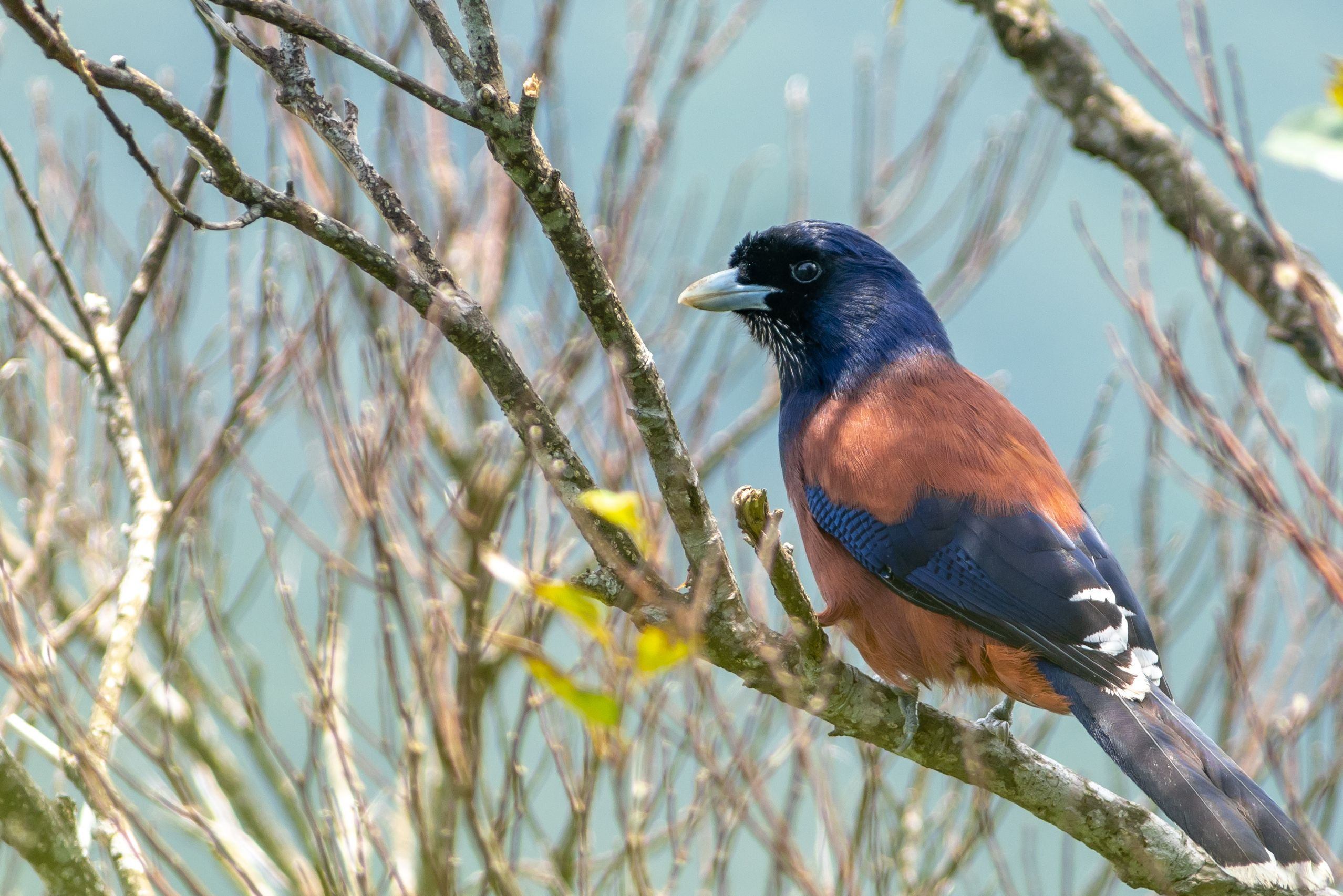 奄美より帰ってきました。^^ 森の中では、なかなか明るいところには出てきてくれませんでしたが、展望台で食事中に、突然現れてくれました。全身が見れたのは、このシーンのみ。本州のカケスと同じく、なかなかの恥ずかしがり屋さんでした。(*^-^*)