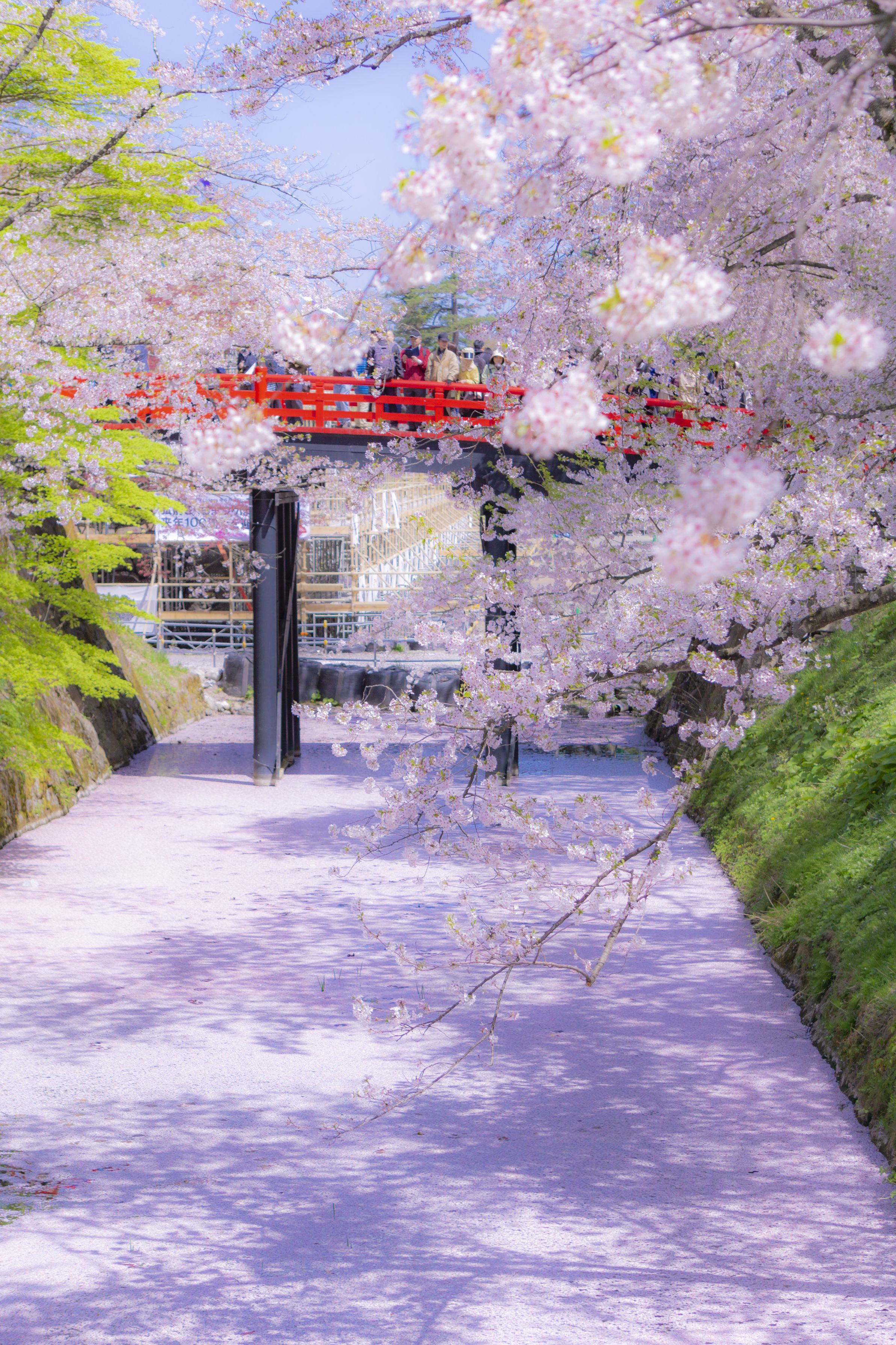 弘前公園の桜の花筏です。堀を埋め尽くす桜の花びらが印象的でした。