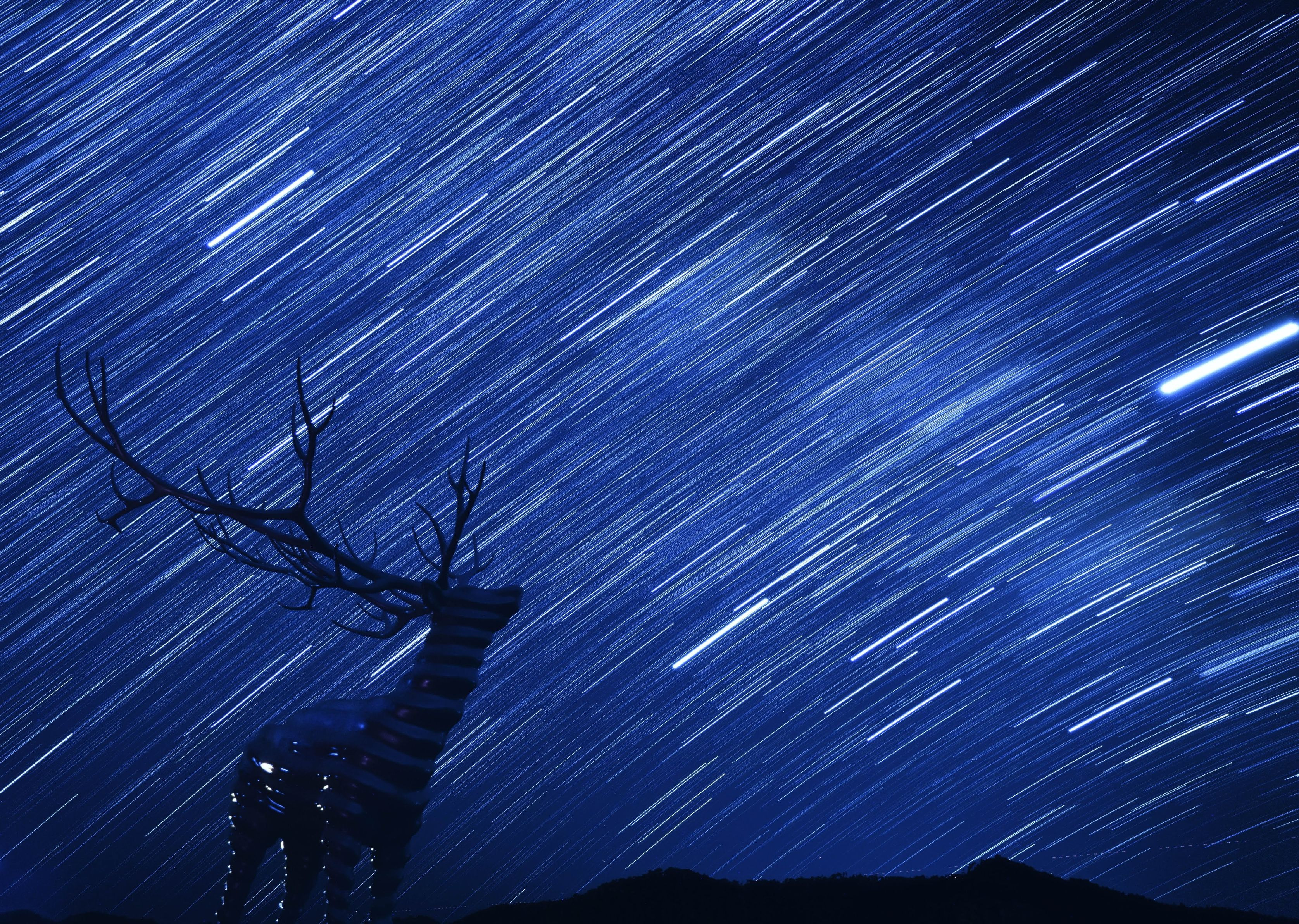 牡鹿半島の鹿のオブジェと星を30分くらい撮影して、明合成をかけました
