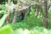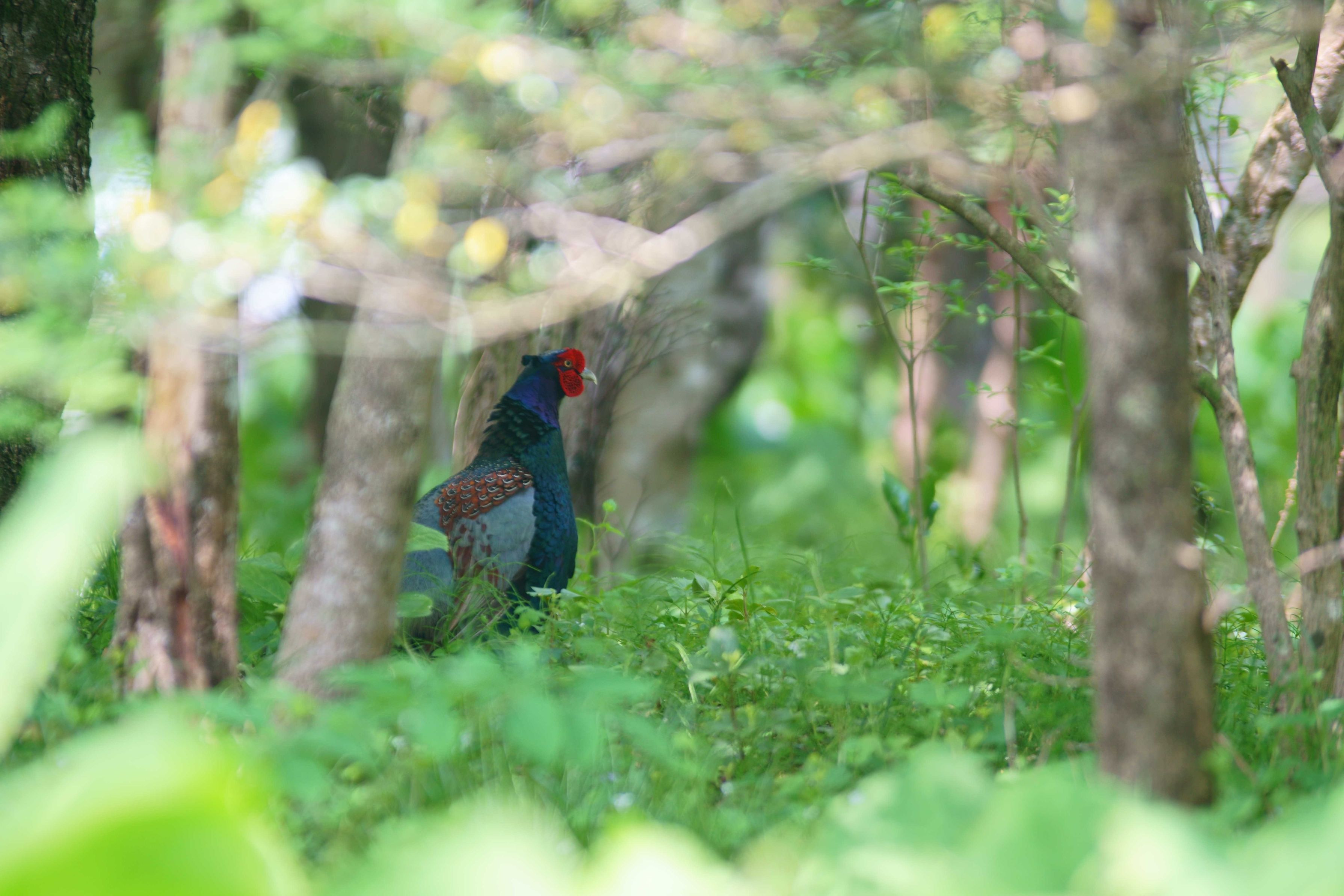 箱根湿性花園には、多くのキジが求愛のためにやって来ています。森の中に目立つ赤い顔でした。