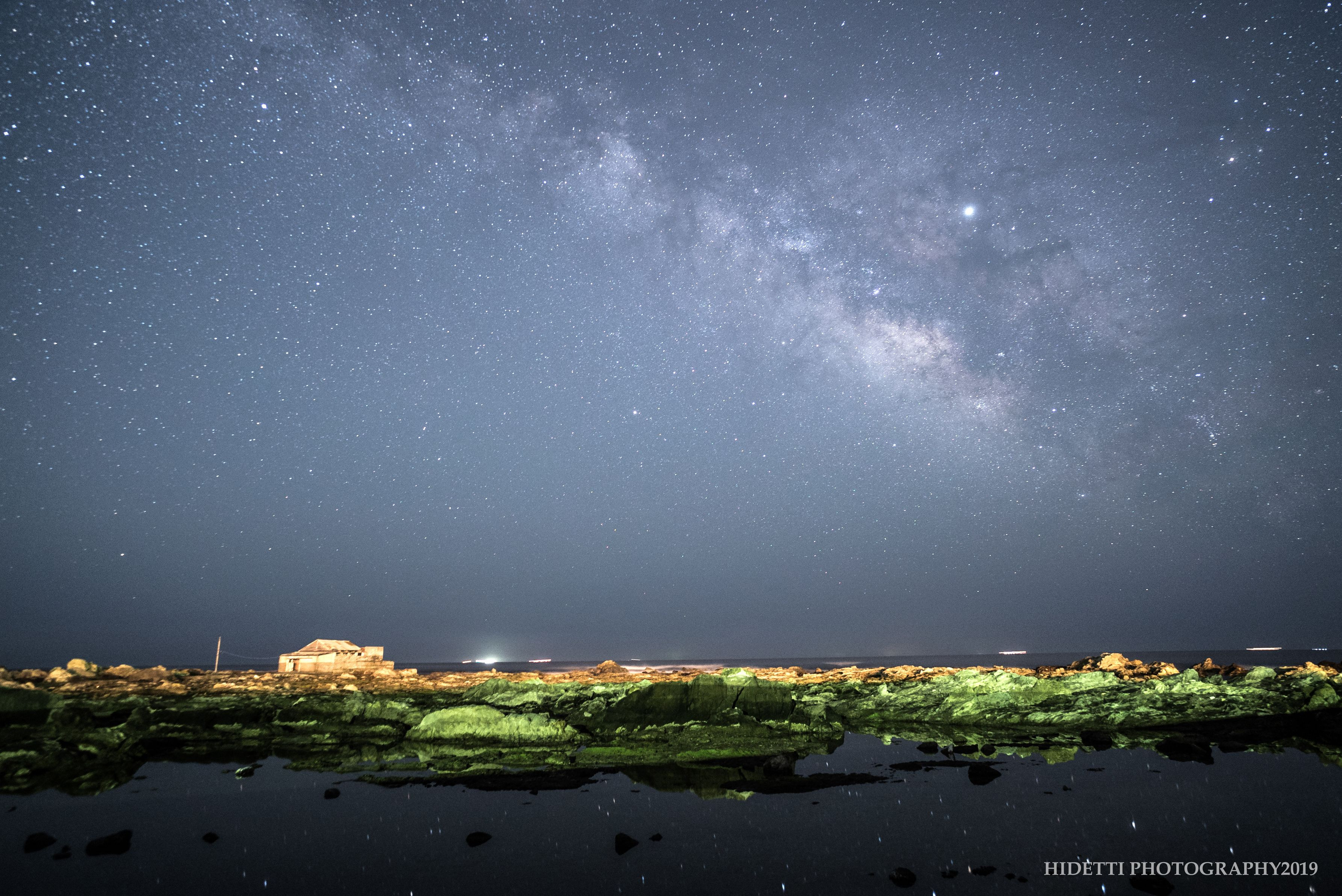 夏の天の川に飢えていた私ですが、雲が晴れた瞬間素晴らしい星空に出会えました。岩礁に建つ小屋はさながら星空製造工場かもしれません☆彡 今回は新しい兵器を導入したので、2枚を見比べていただき感想をください(^^) Location:Chiba Japan