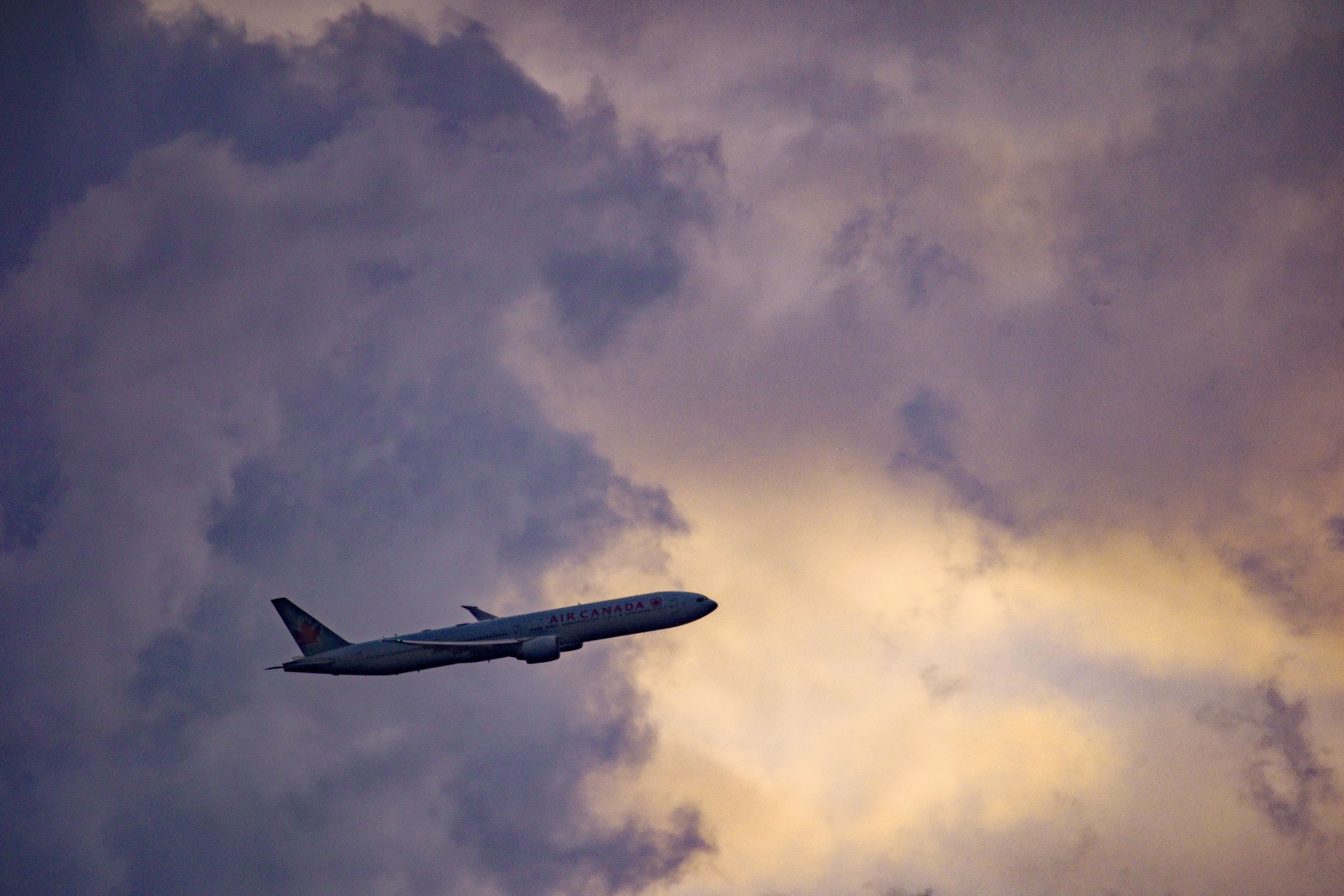 上空に寒気が入り、雨雲が発達、接近する中エアーカナダ機が飛び立ちました。
