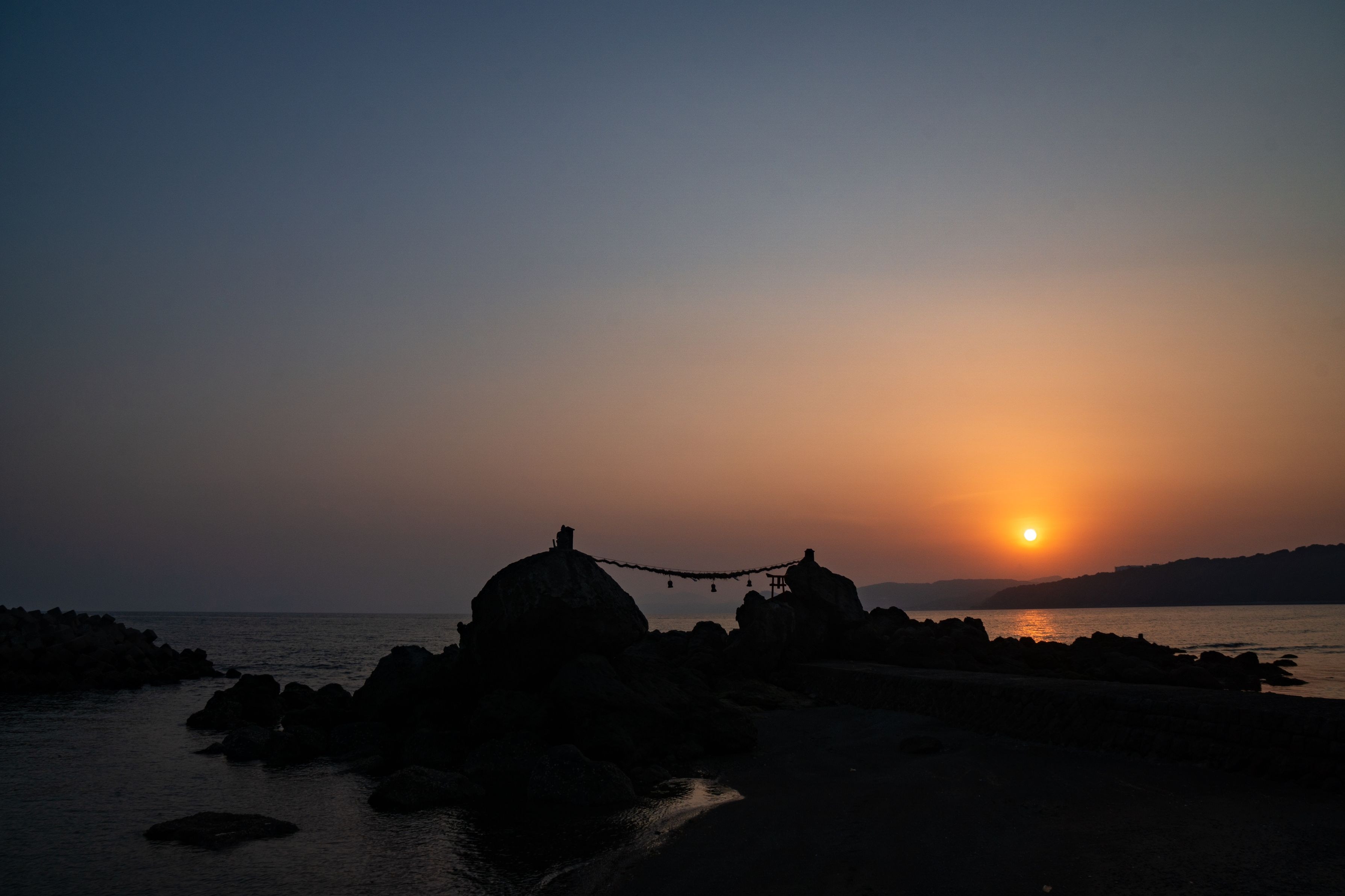 長崎県 千々石海岸に祀られている 福石様。 夕方に通りがかると夕陽が綺麗だったので慌ててパチリと撮影しました。
