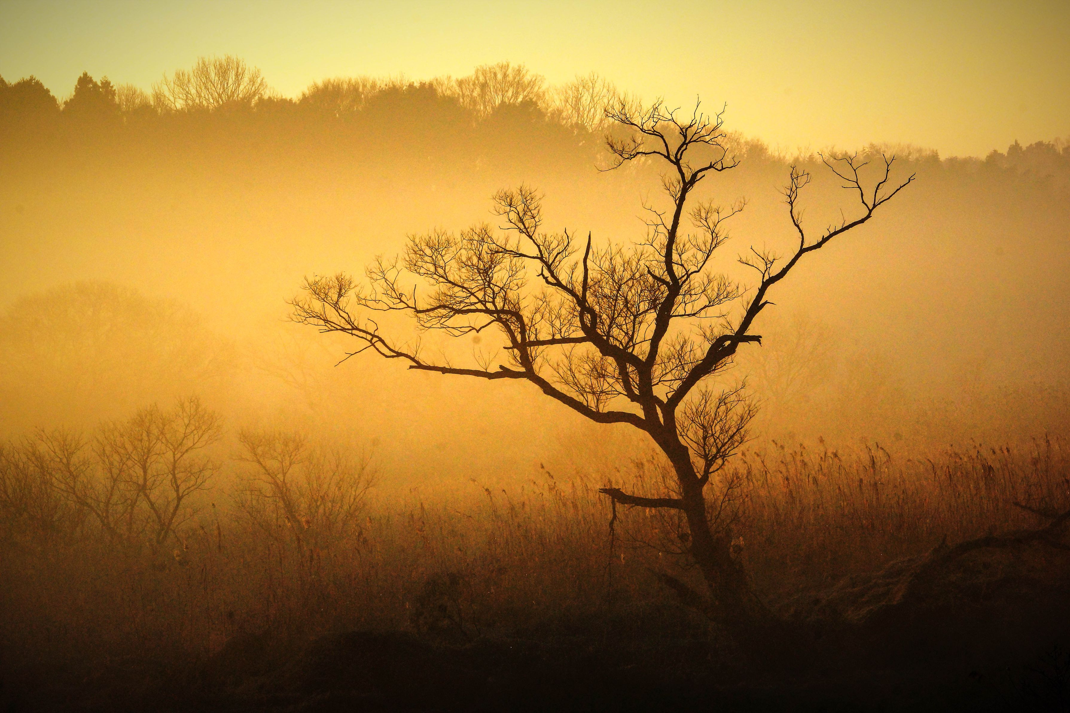 枯れはてた木ではあるが 姿よく佇んでいる。朝霧がかかり幻想的になった光景を撮ってみました。同じようなアングルですが時間帯をずらしながら撮ったものです