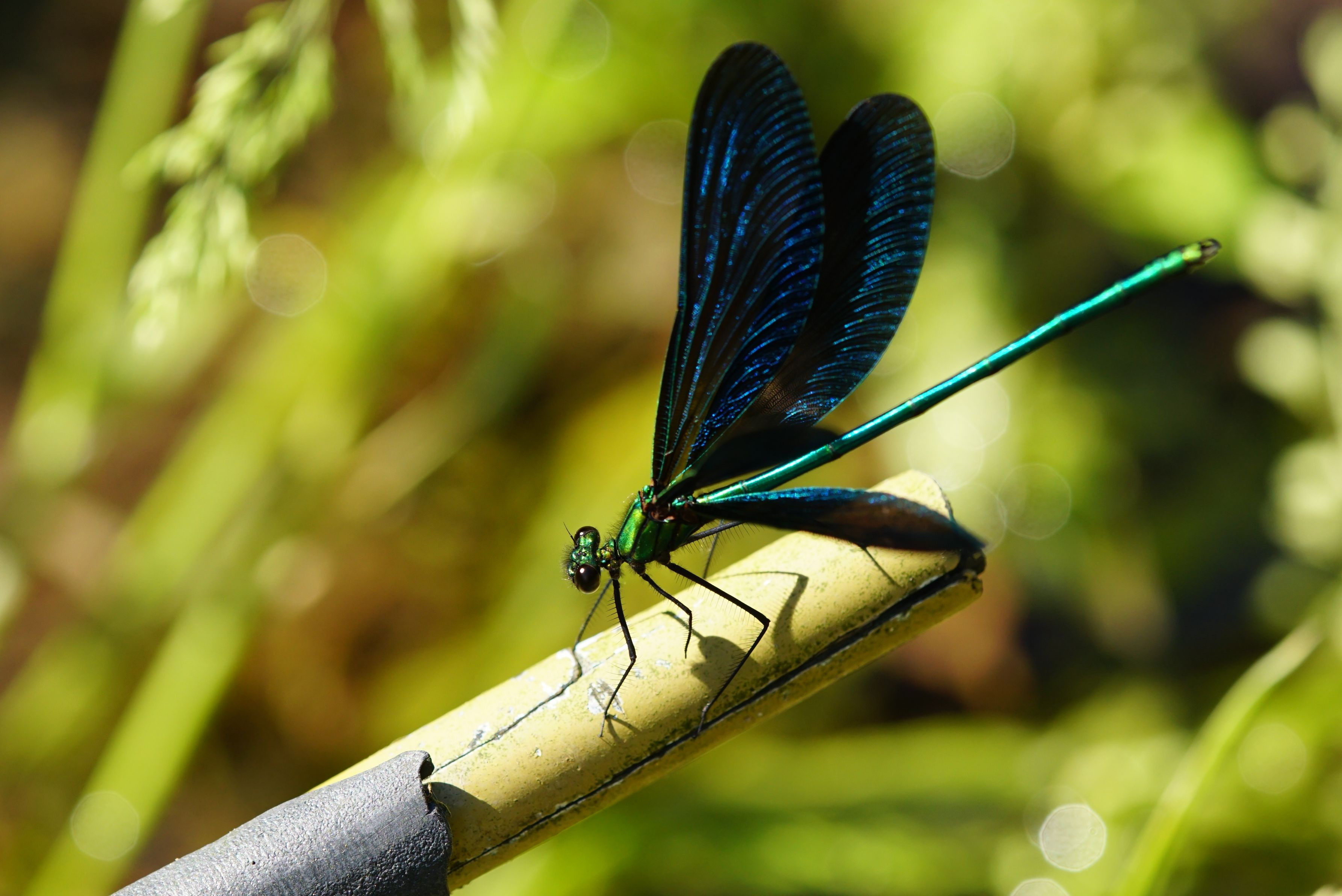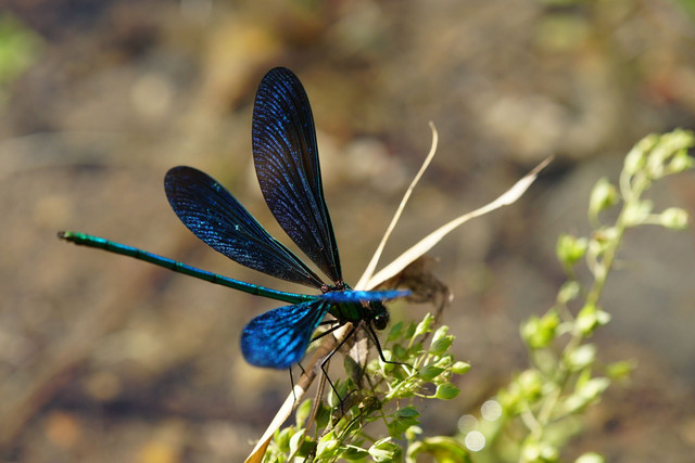 アオハダトンボ・♂は、翅を開くとメタリックに輝きます。初夏の日差しの下で撮影するのが、とても楽しみです。ただ、その美しさを引き出すアングルと距離をつかむのにいつも苦労します^^;