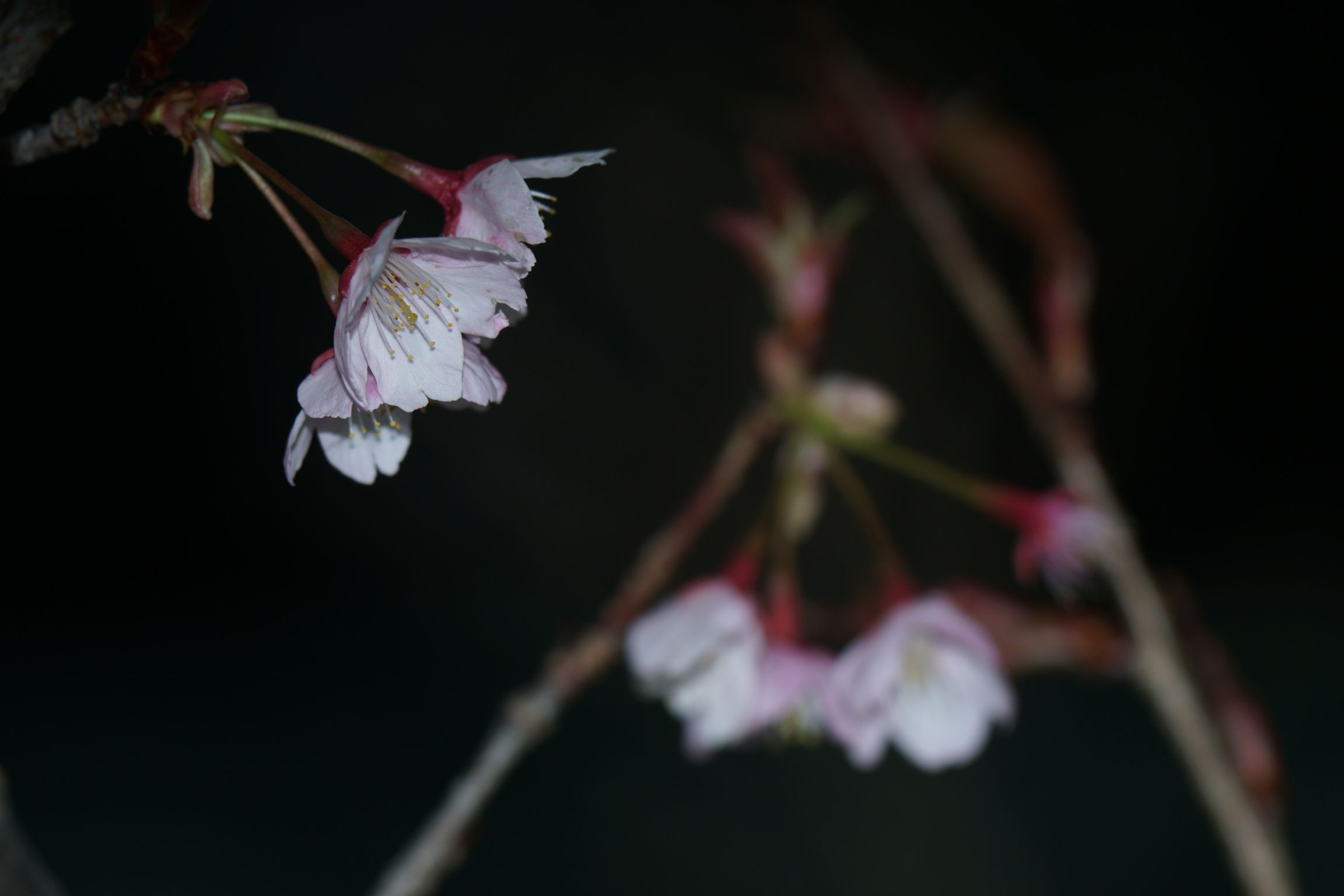 太陽の光を浴びている桜がかなりあった中で 生える場所が悪く、さらに花の重さで下に傾いてしまった桜を見てて なんとも言い難い心境になった