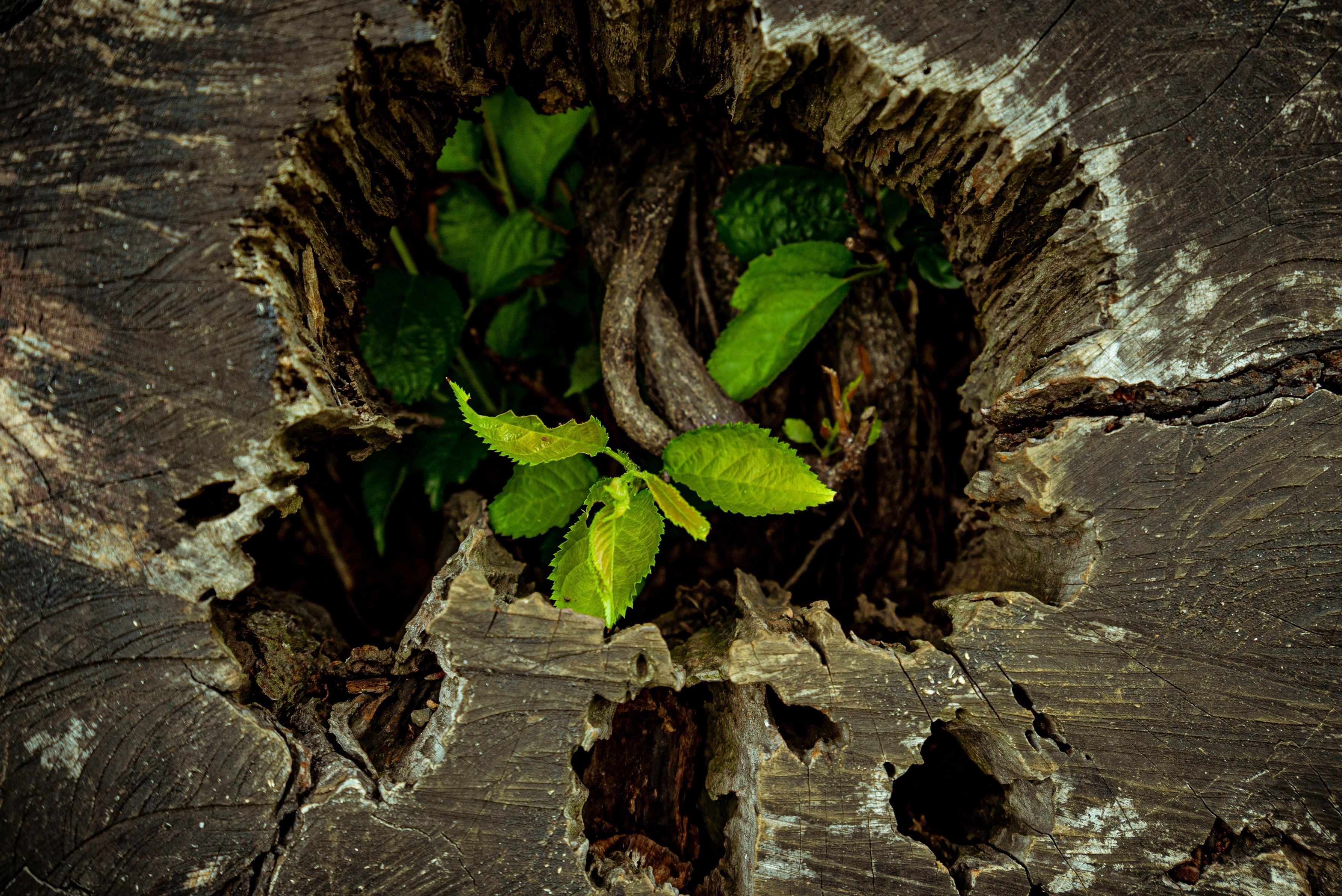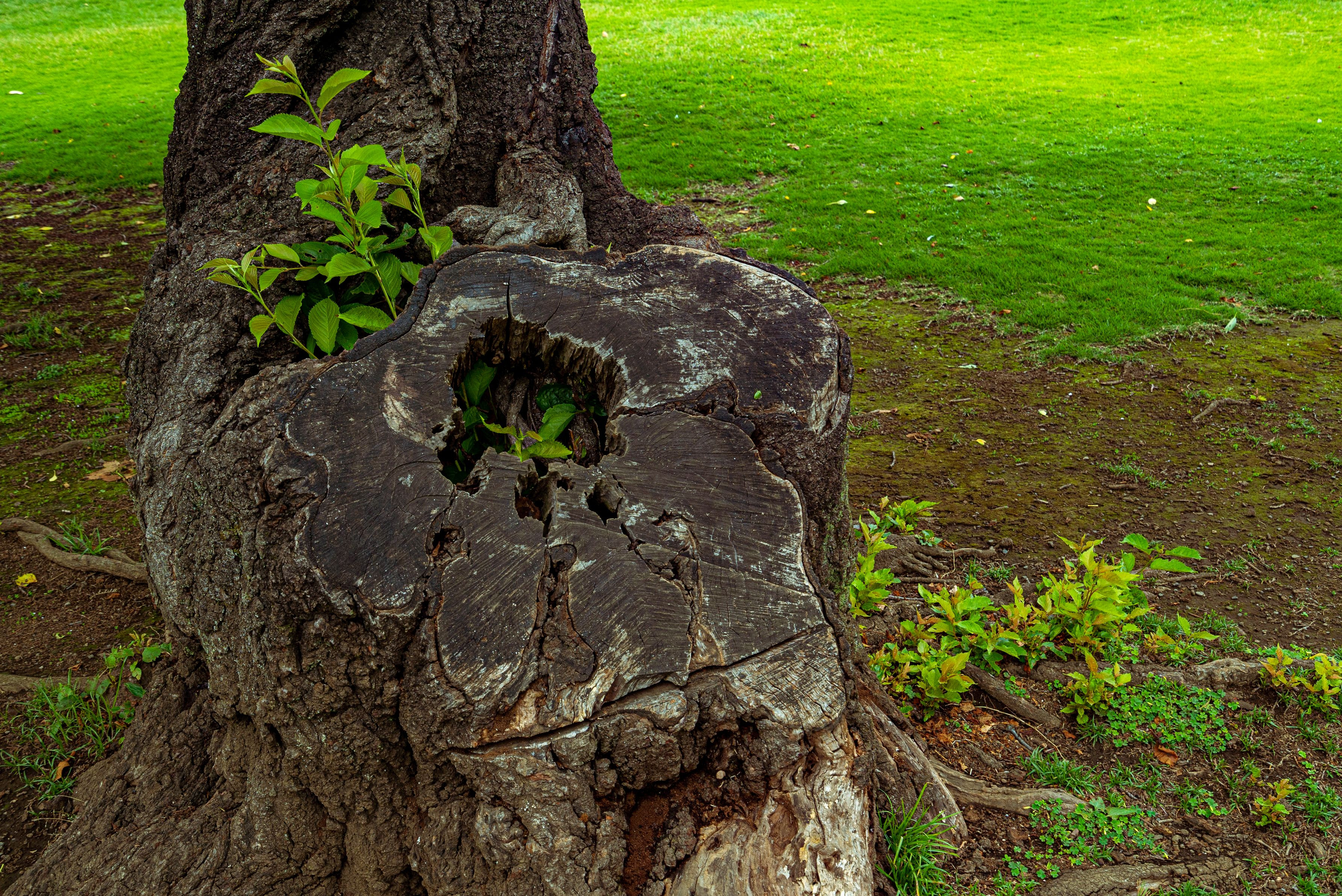 製品情報>My Sony>αcafe>切り株の穴から覗く若葉たち(omioさん)