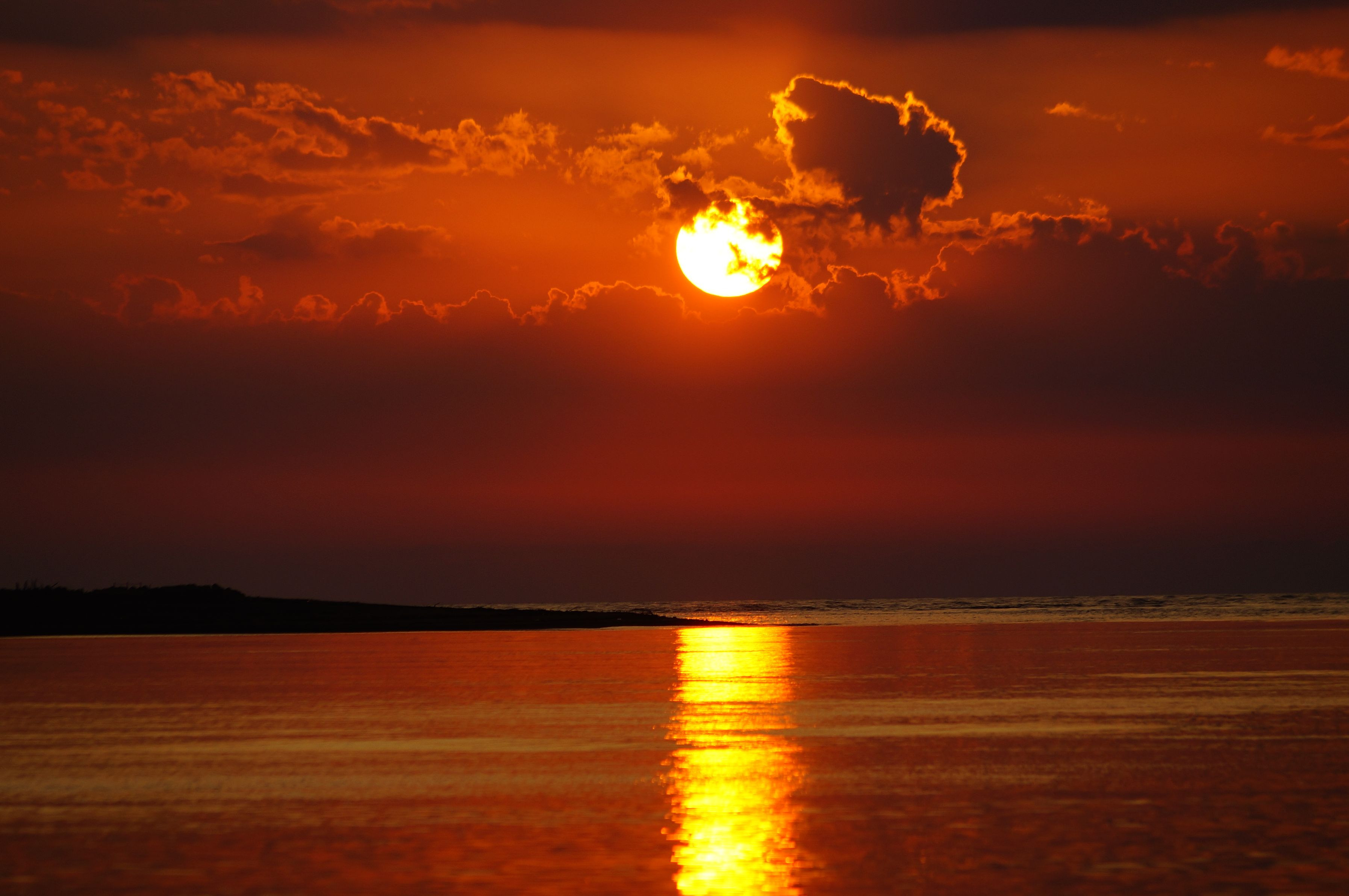最上川河口に沈んで行く陽