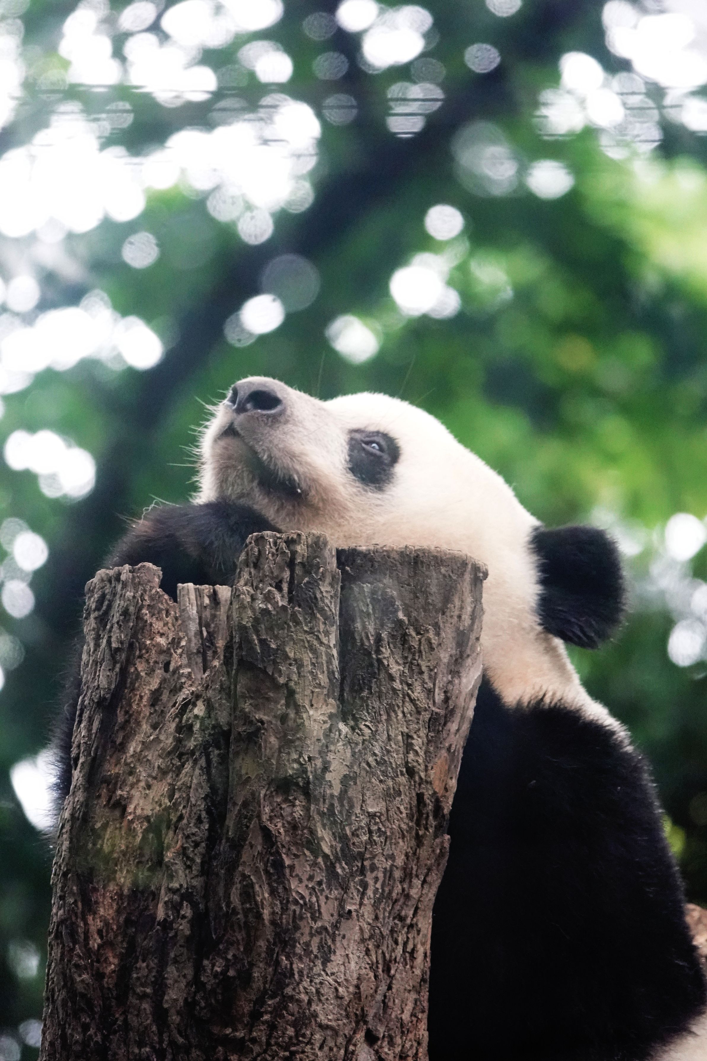 上野動物園にて 急に降ったり止んだり、と梅雨時らしい1日でしたが、そんなことにはまったく動じないシャンシャン。 空を見上げるその表情に、『大きくなったね』と思いながらシャッターを切りました。