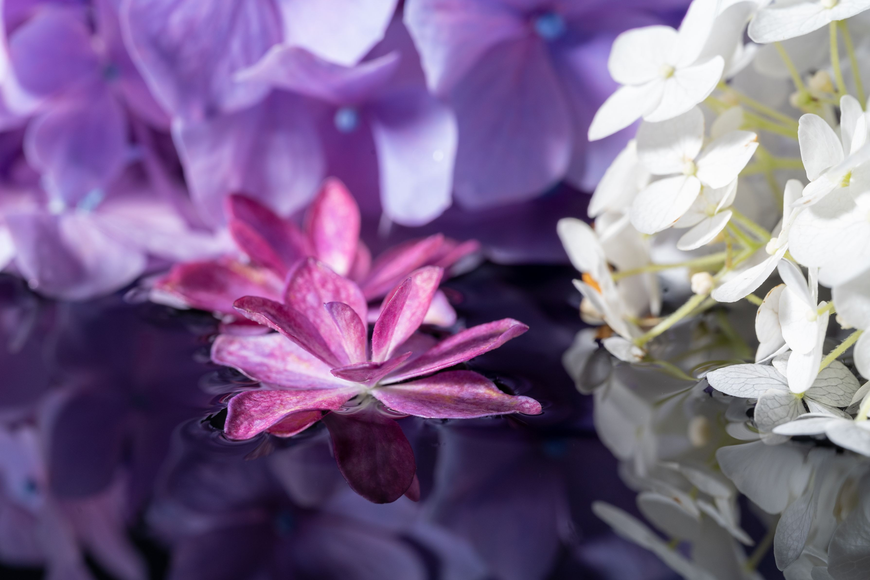 いろいろな紫陽花を水に浮かべて撮ってみました。