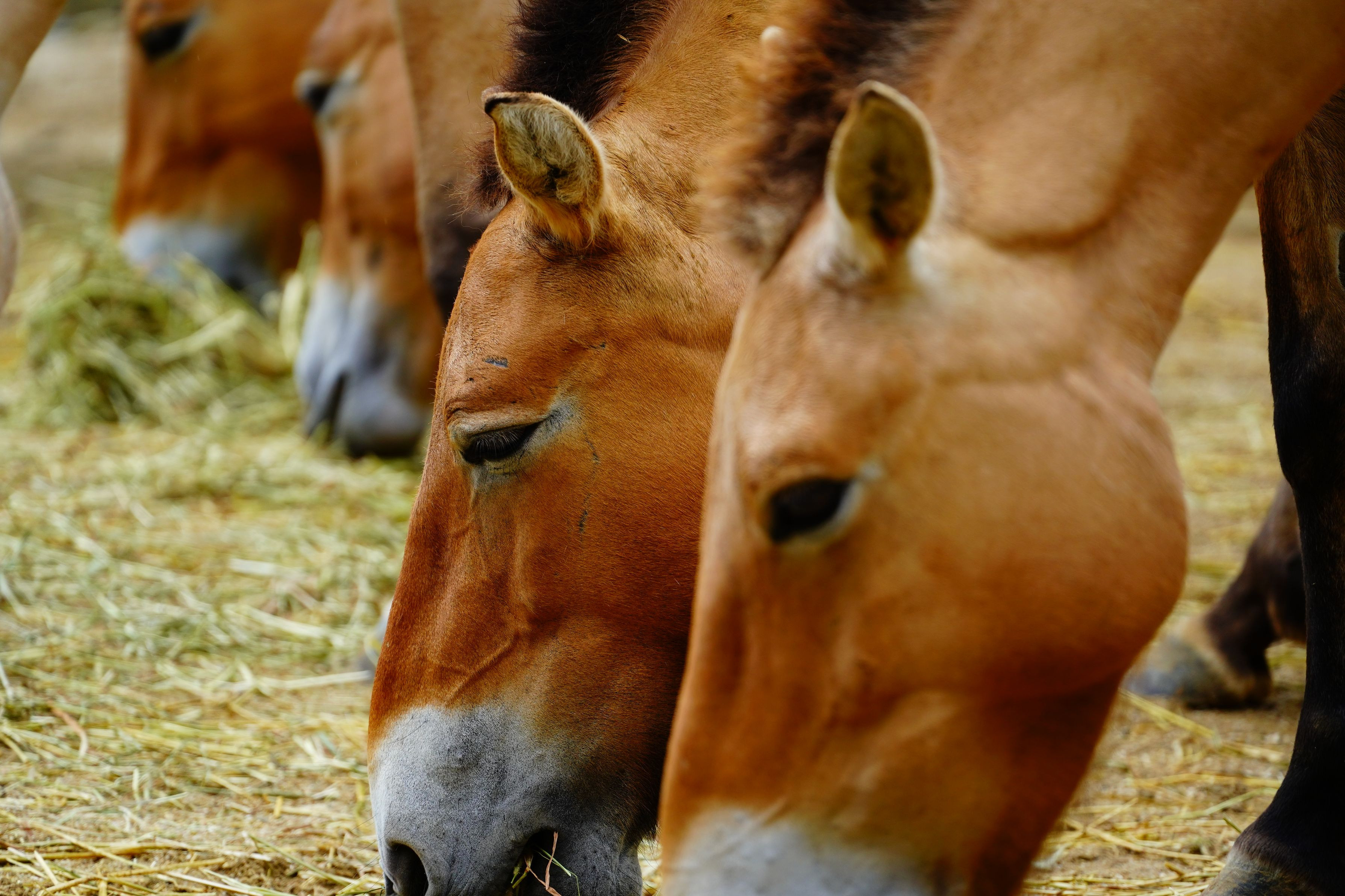 一列に並んで食事をしていました。 多摩動物園にて