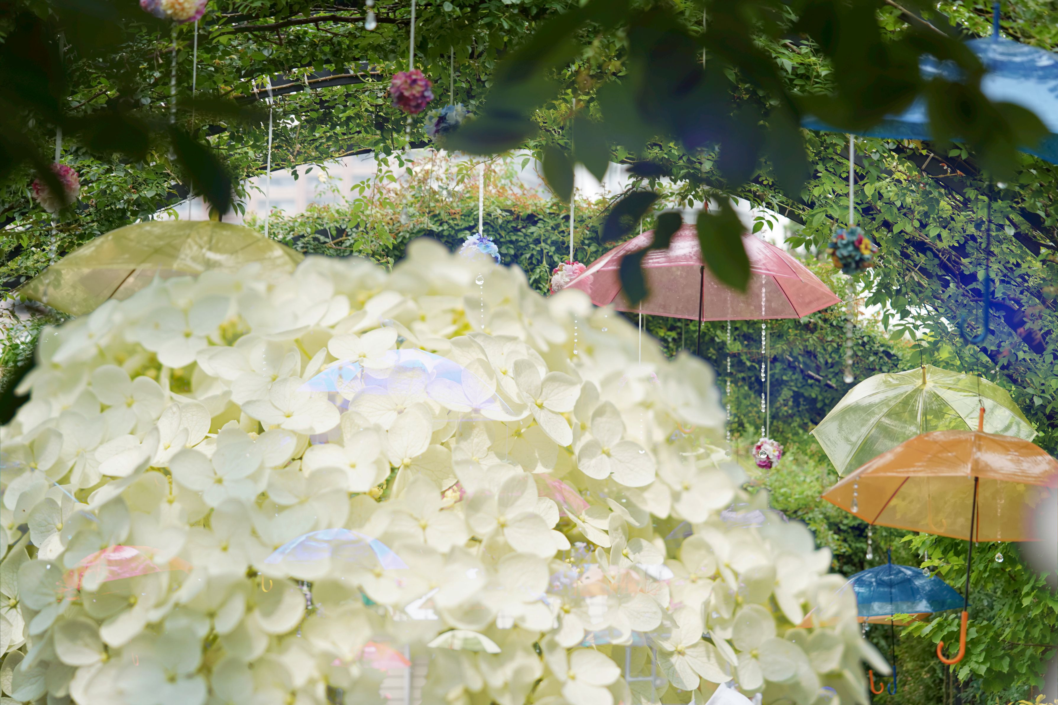 ガーデンでは、色とりどりのカサのオブジェが迎えてくれました。