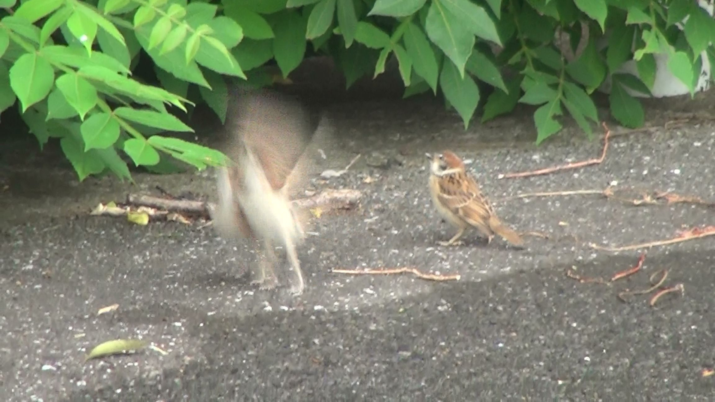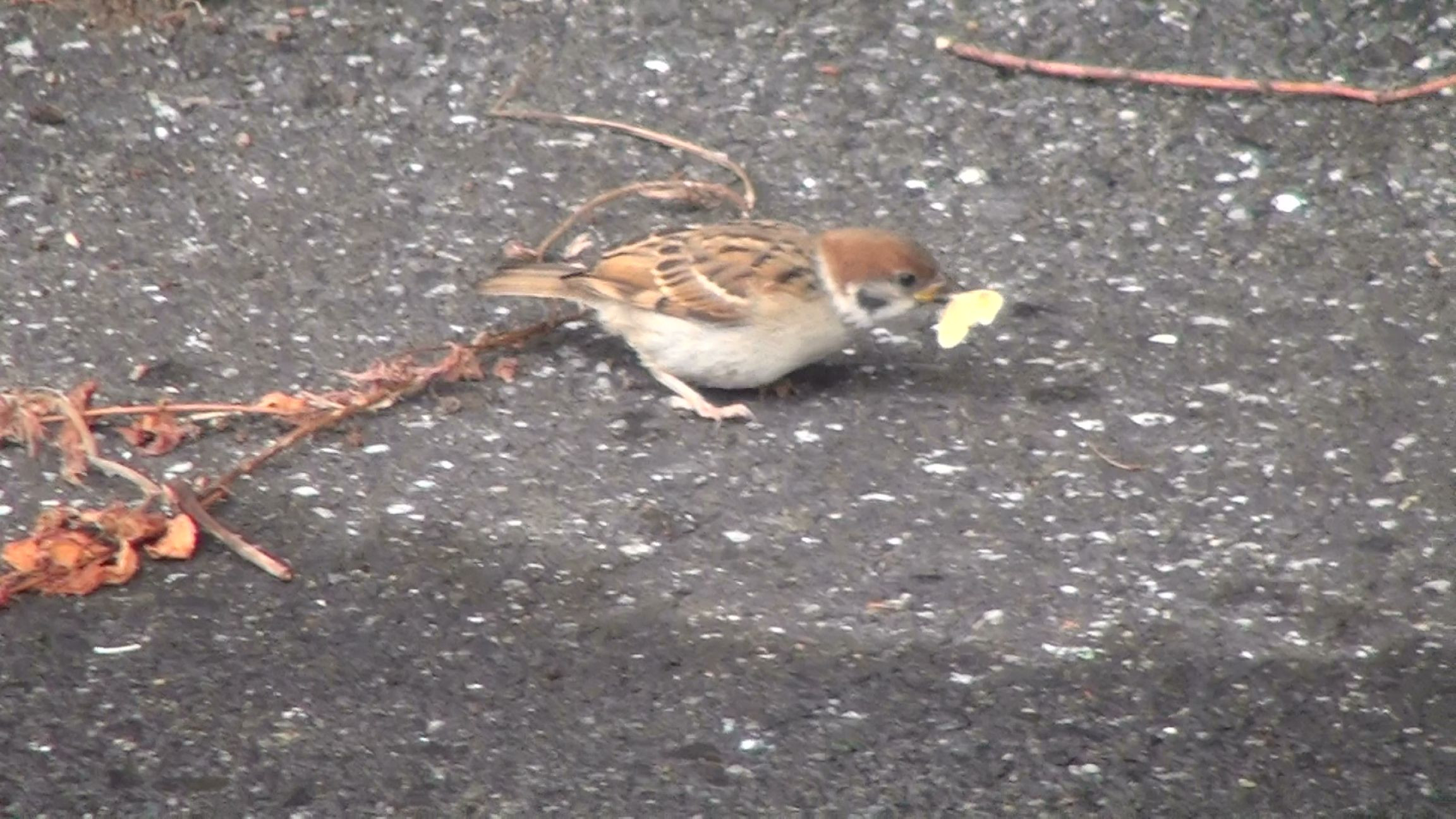 2019,6,29 HDR-PJ40v 餌を咥える「雀」どうしてか、ビデオだけ時に多い場面。