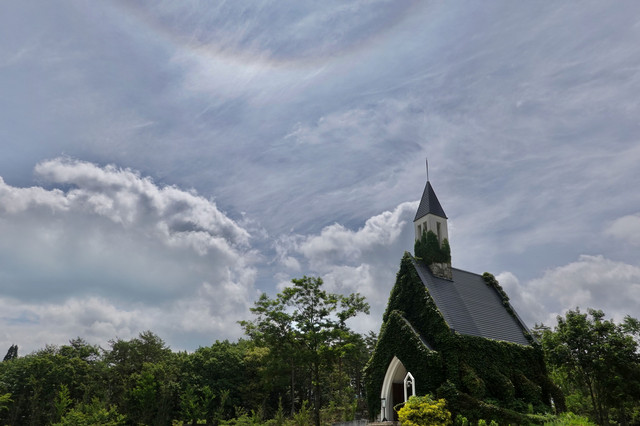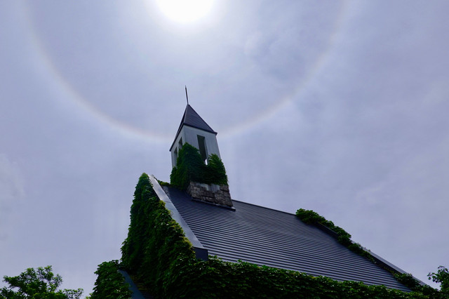 日暈はその後、歩いている間も消えたり見えたり…。