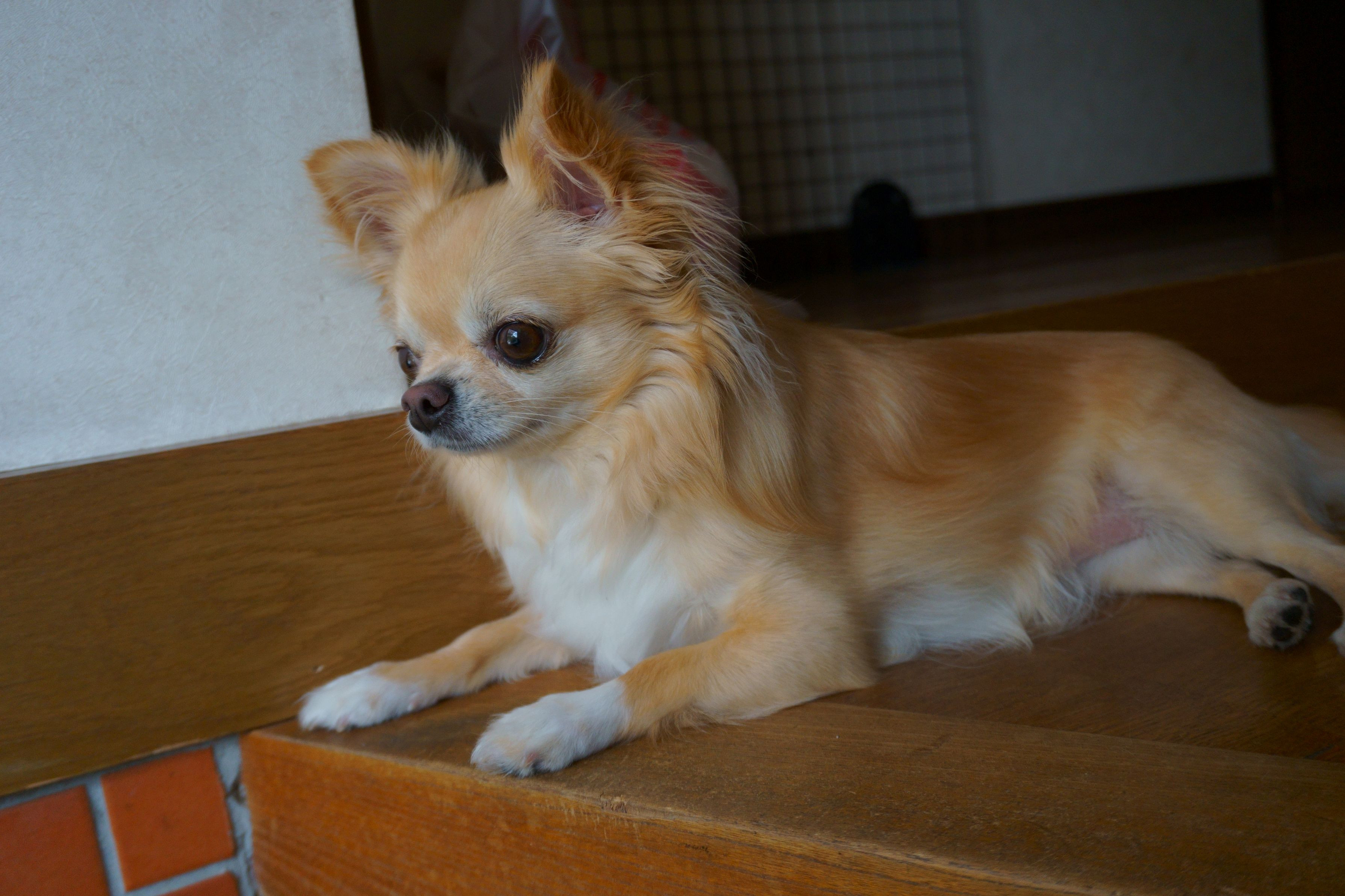 玄関でいつも外を見て過ごすのが大好きな愛犬です