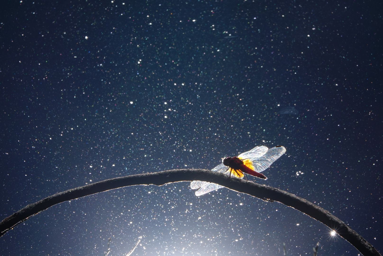 久しぶりの投稿。😅 今日は、この間撮った赤トンボ。🎵 真っ昼間なのに、夜空の下で撮っているように撮れた。 写真って、楽しい。😊