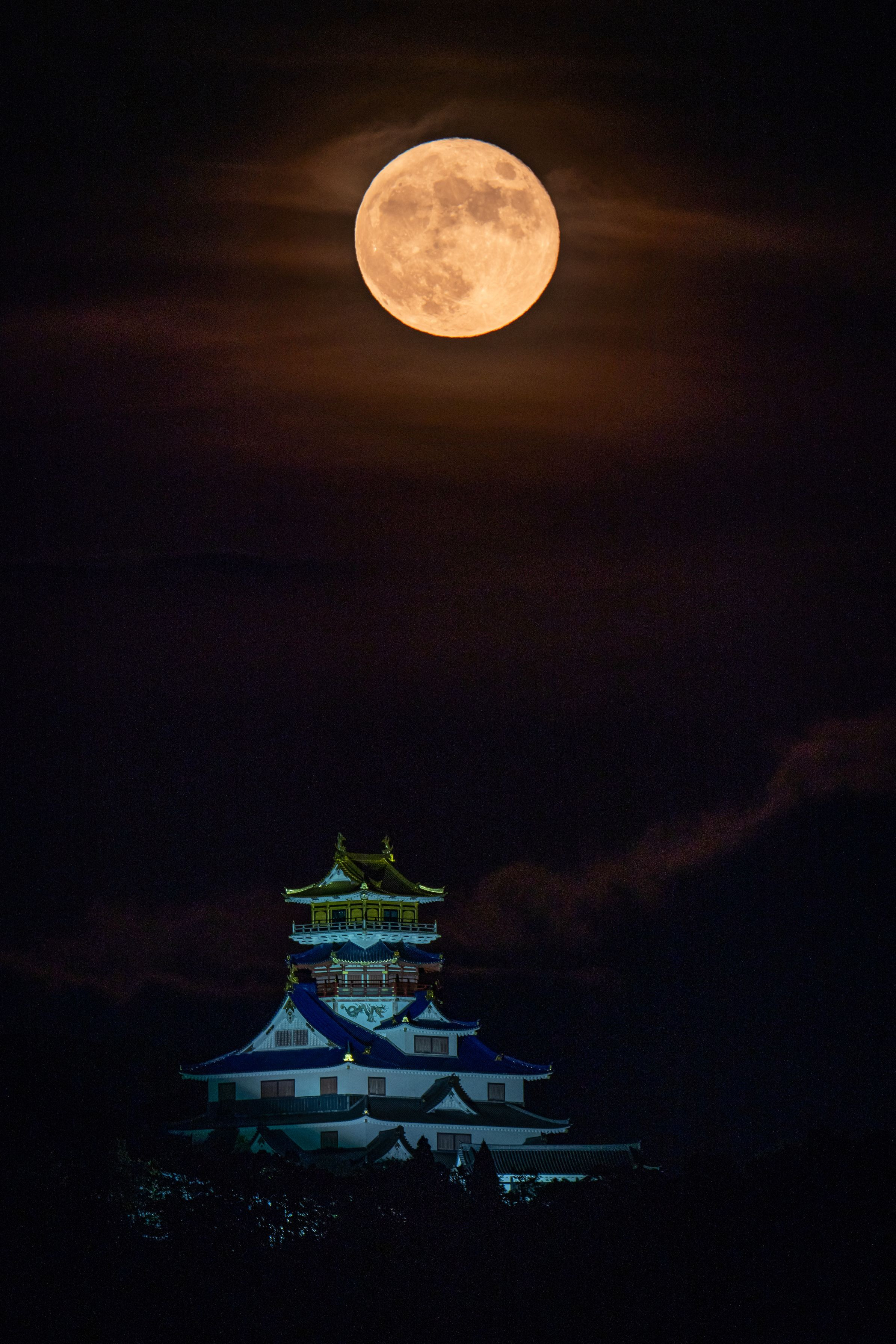 伊勢忍者キングダムの安土城と満月です。