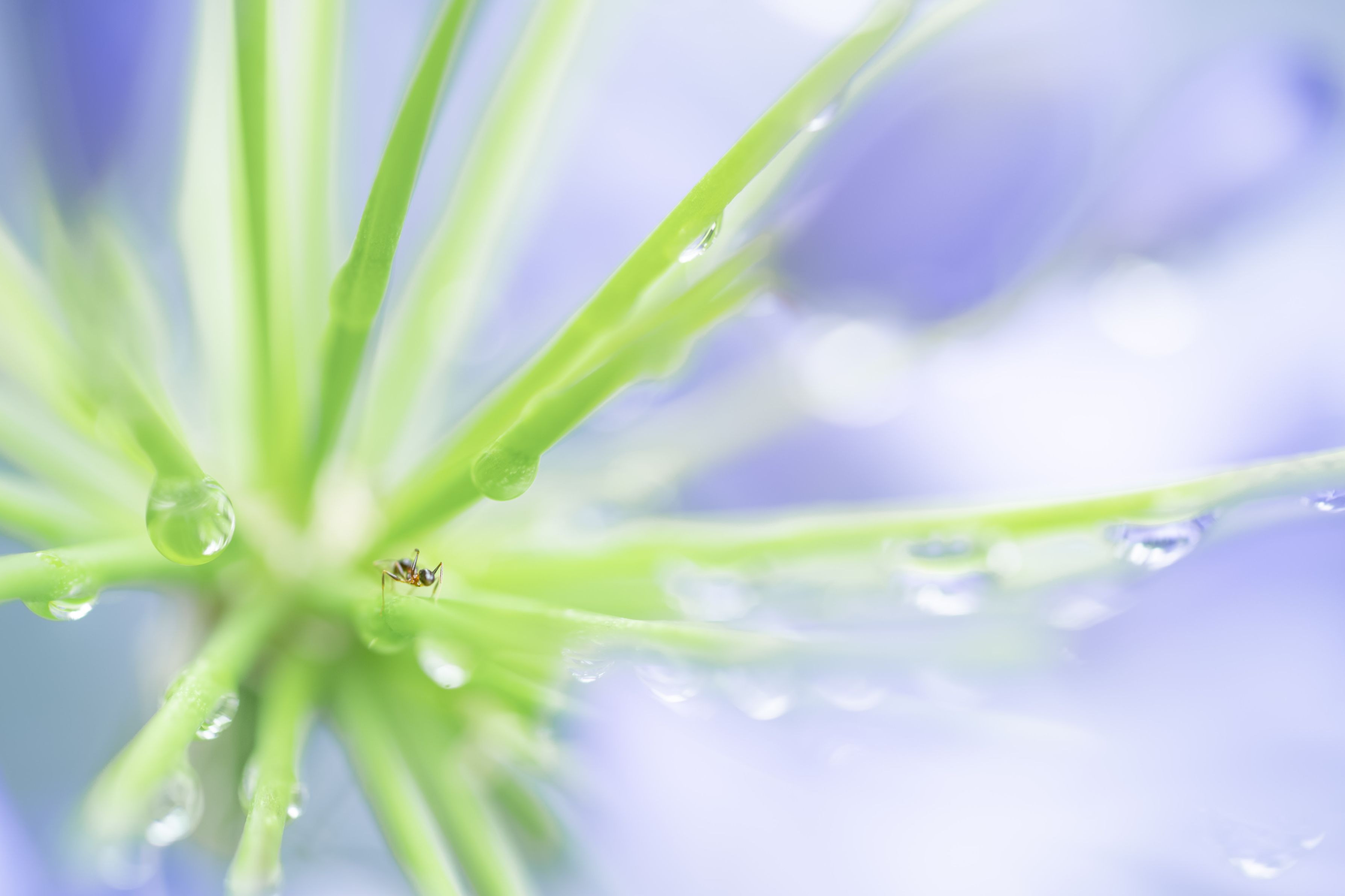 雨上がり、雫たっぷりのアガパンサスでアリが楽しそうに遊んでいました。