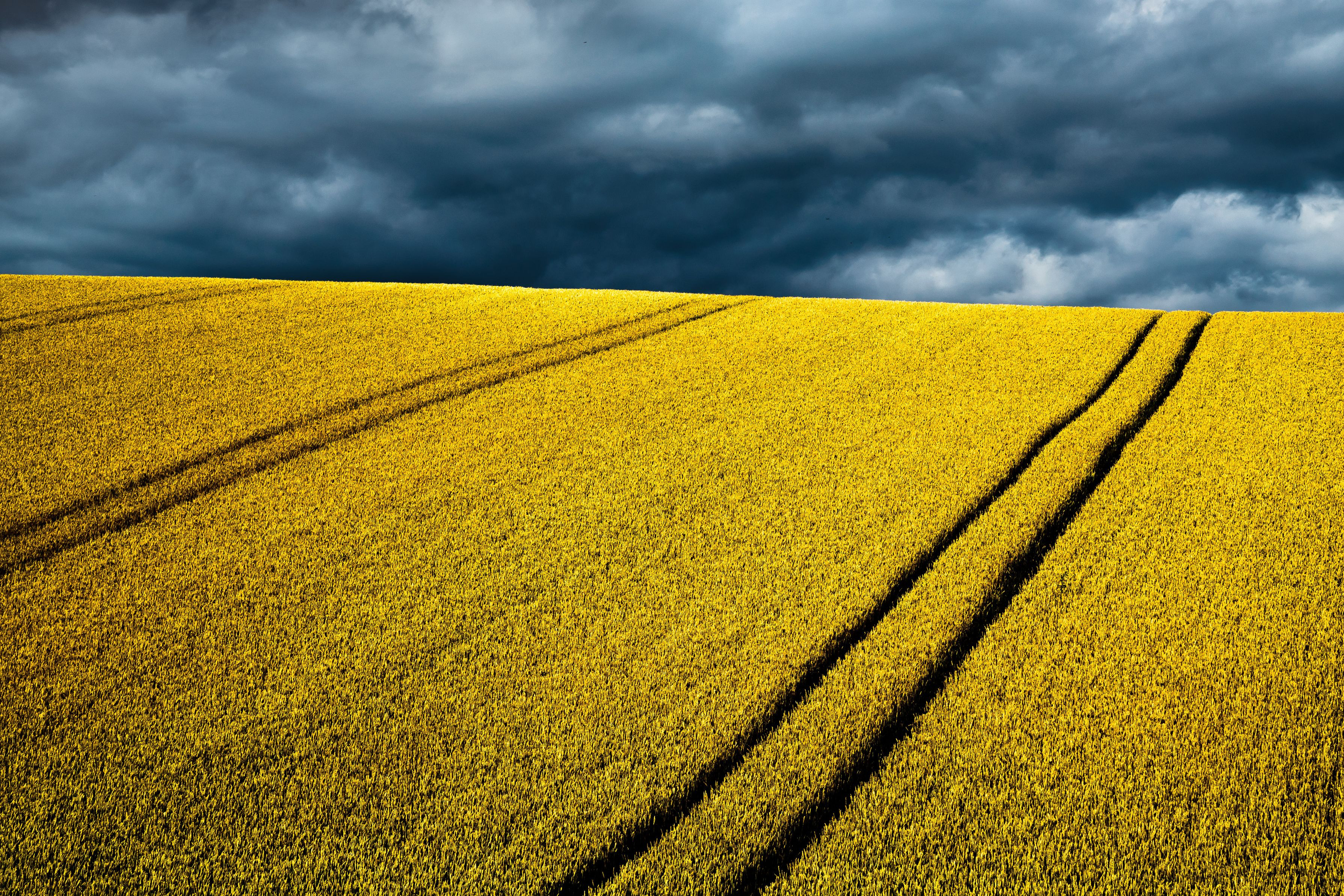 北海道・美瑛町にて。曇天の丘に少しだけ光が差し、美しい色が現れました。