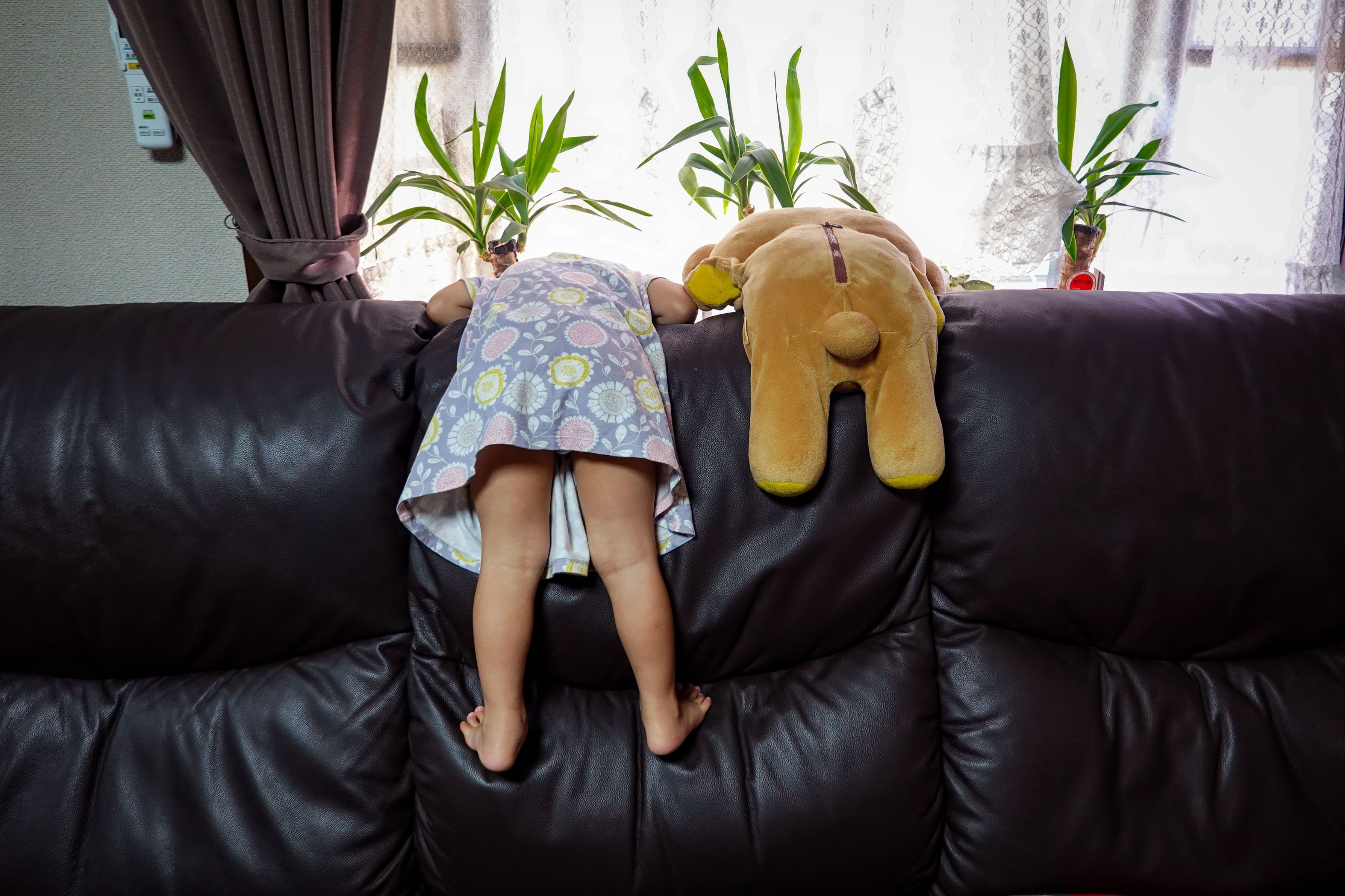 暑い暑い日曜の午後は、冷房の効いたリビングルームが一番! でも孫は元気いっぱい!! じーじは疲れたので、リラックマと遊んでおくれ・・・汗