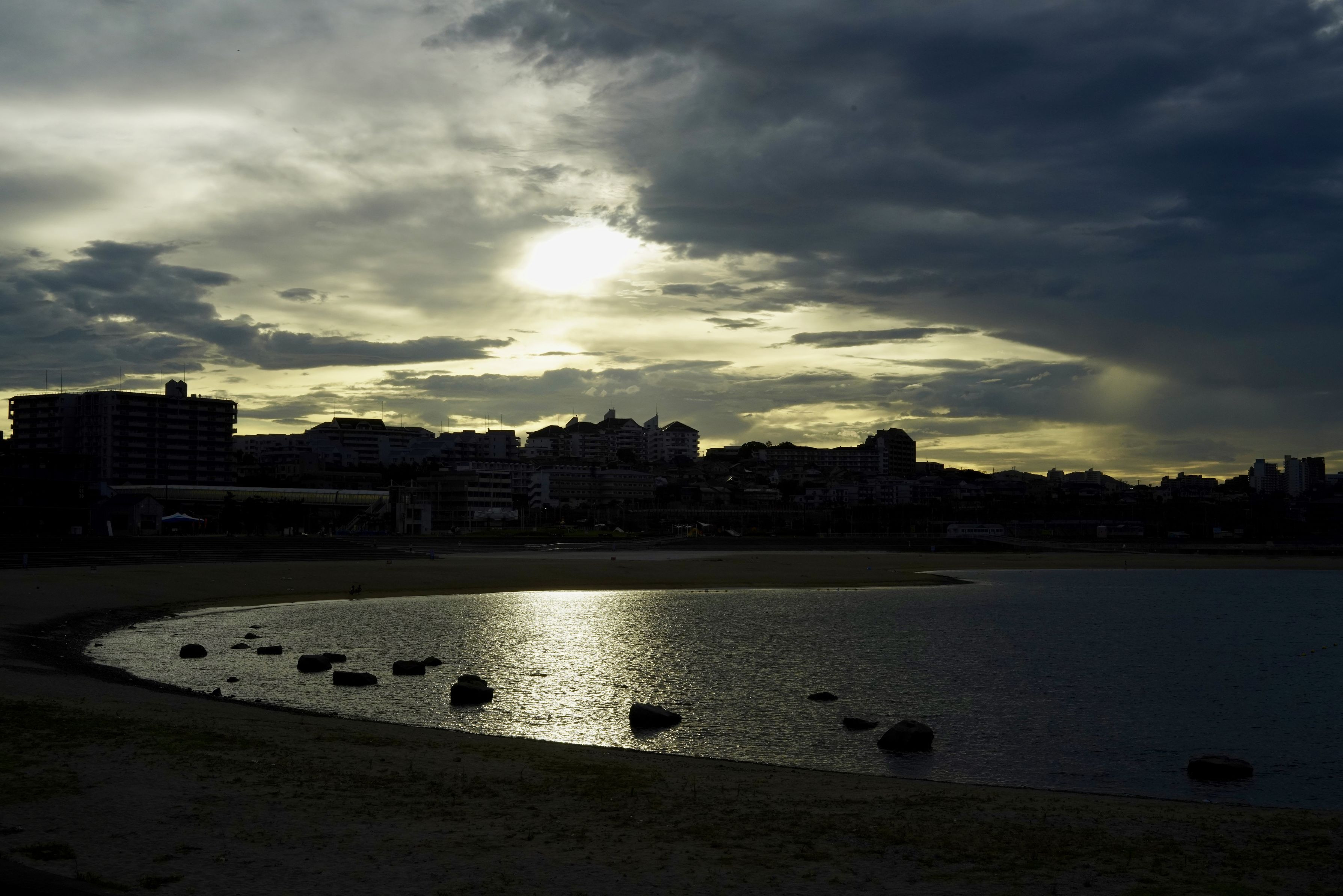朝の太陽が海に反射して金色に輝いてました