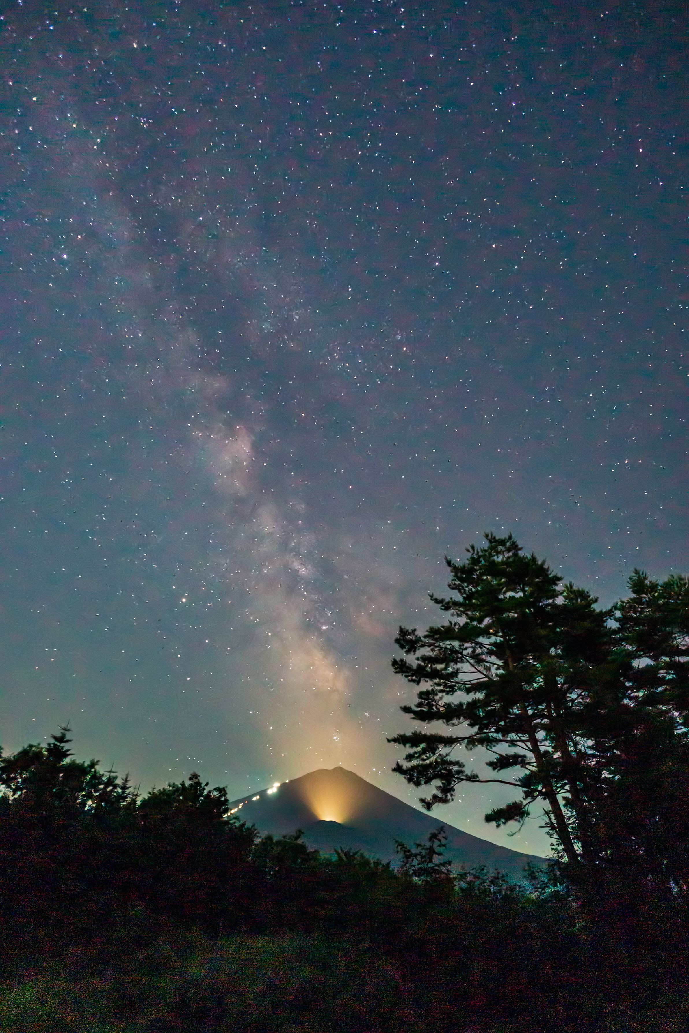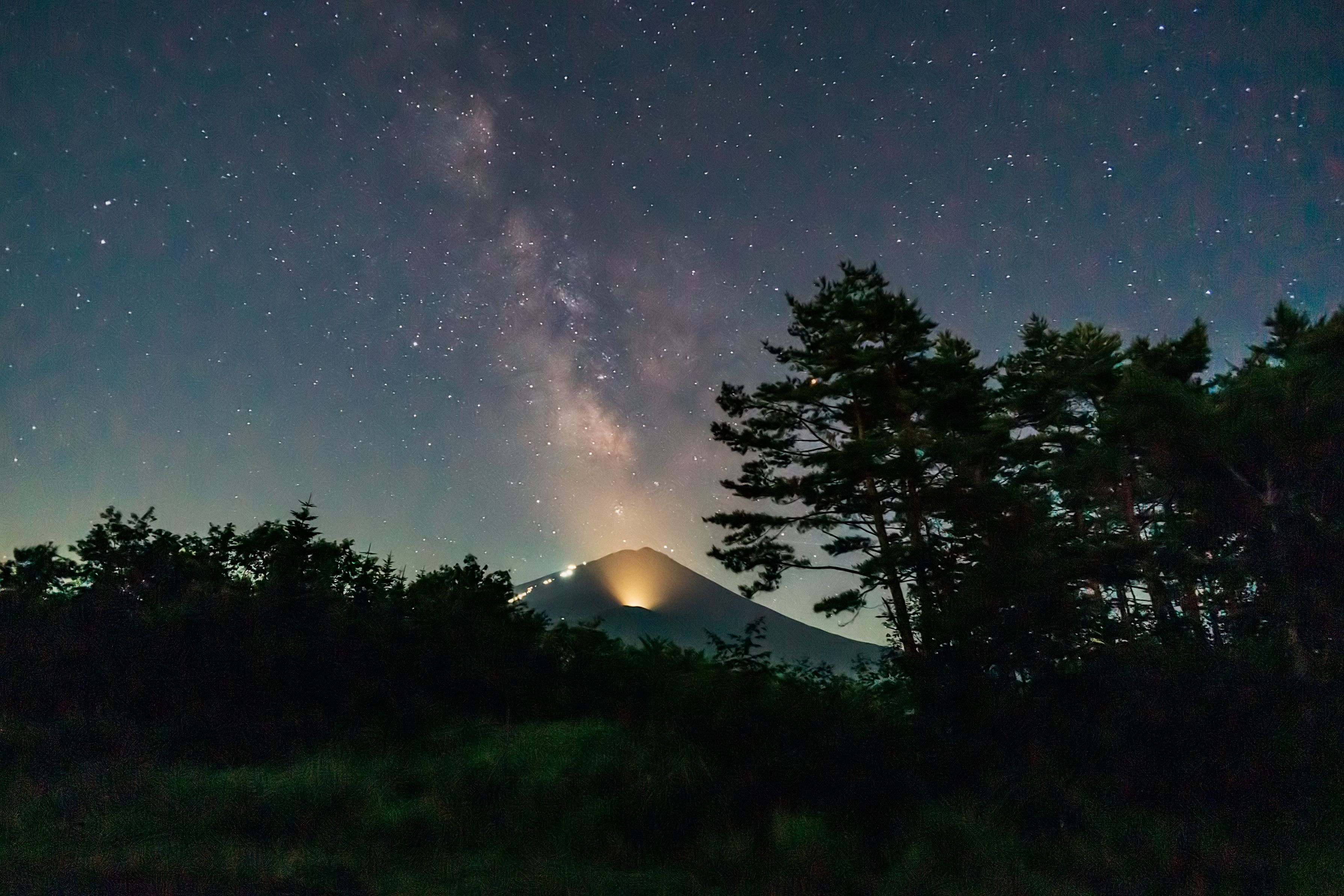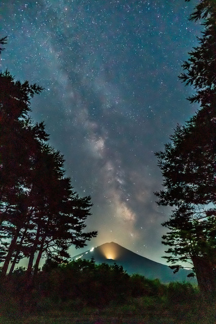 製品情報>My Sony>αcafe>夏の天の川と夜の富士登山道の光(Anyさん)