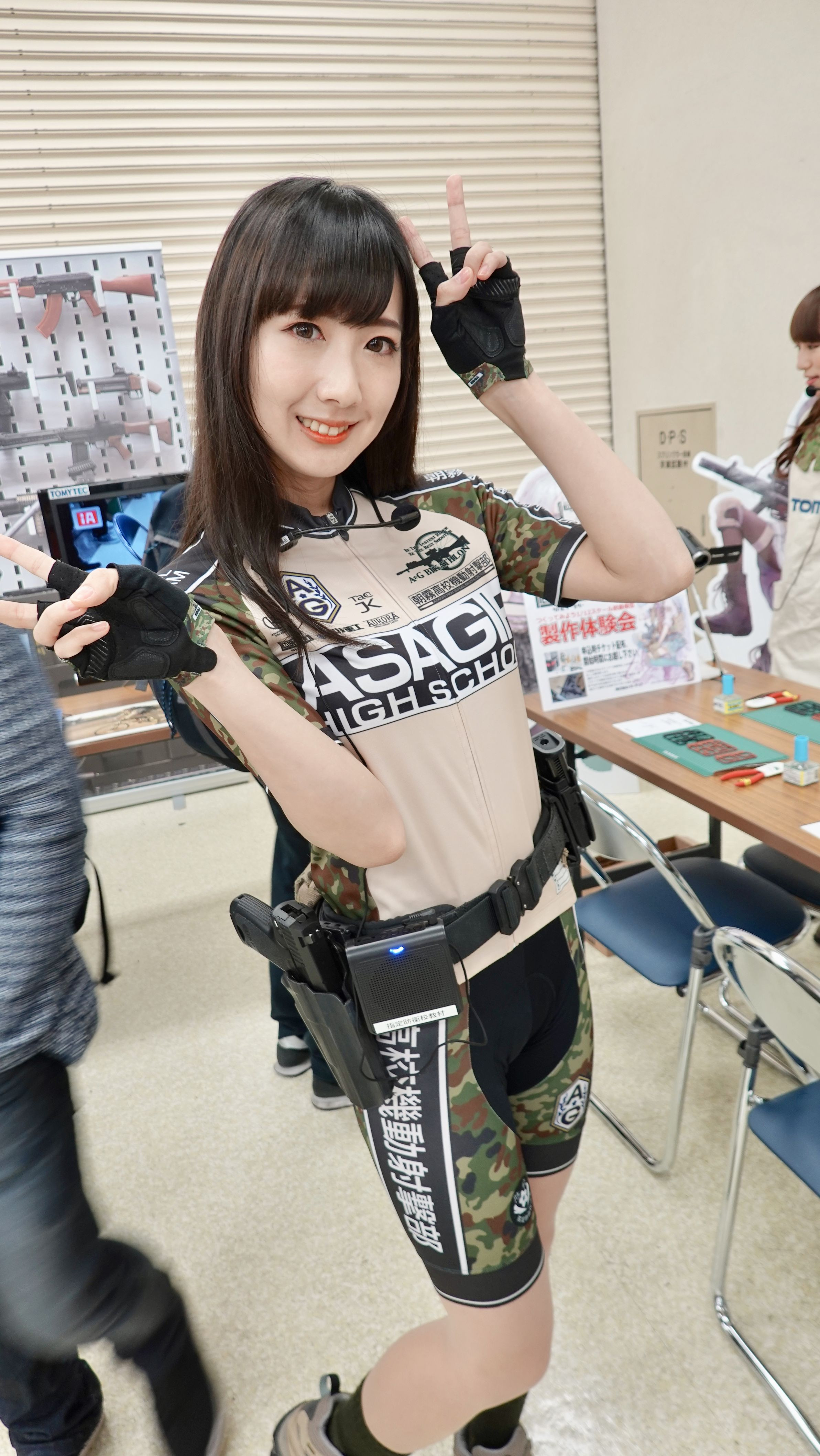 AKガーデン16での写真です。 リトルアーモリーブースをお手伝い中の東城咲耶子さん 朝霧高校起動射撃部のサイクルジャージ姿
