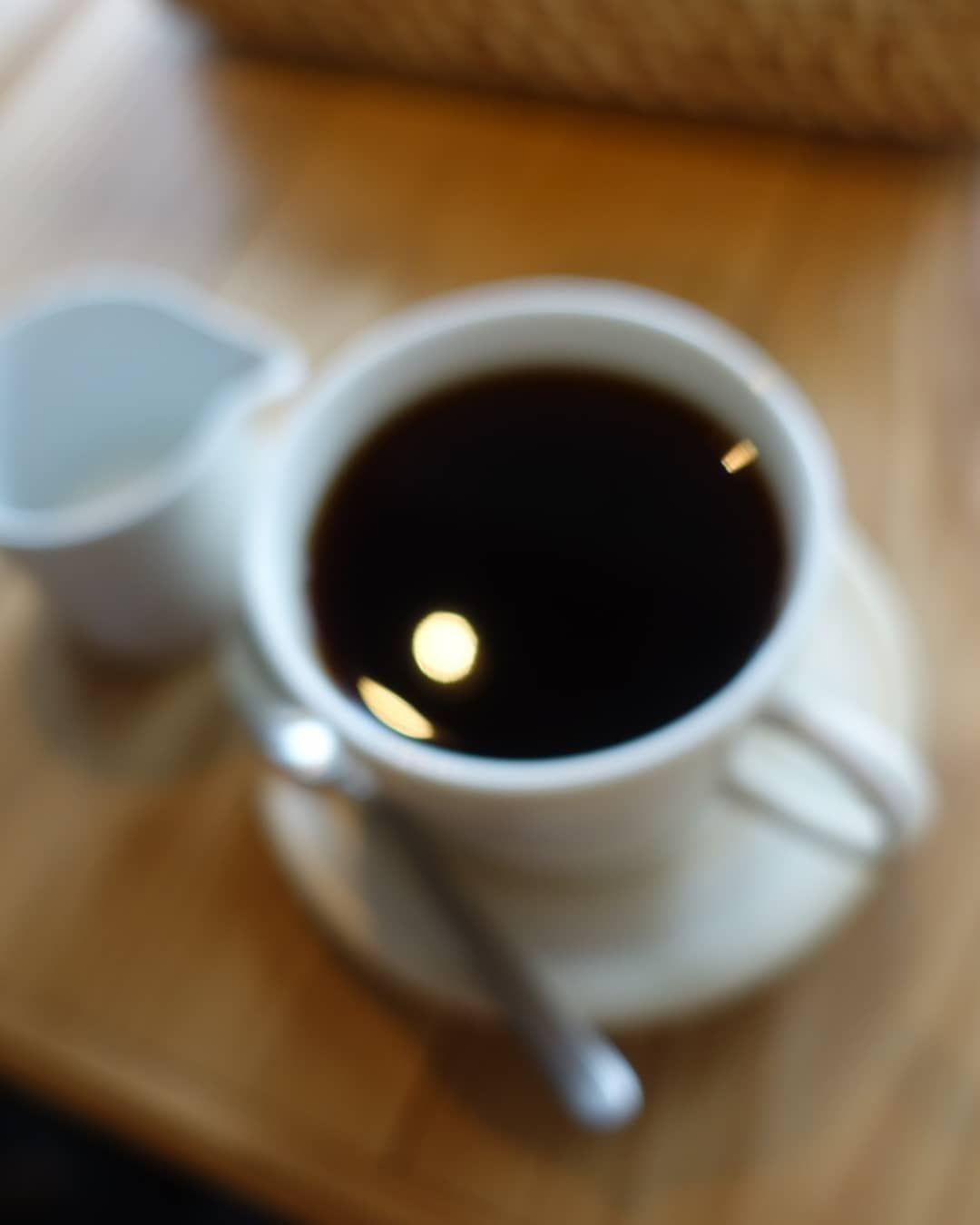 素敵なカフェでコーヒーとケーキを頂きました。 コーヒーが運ばれてきた時にふとコーヒーに映った豆電球のあかりがきれいでその一点だけにピントを合わせてみました。