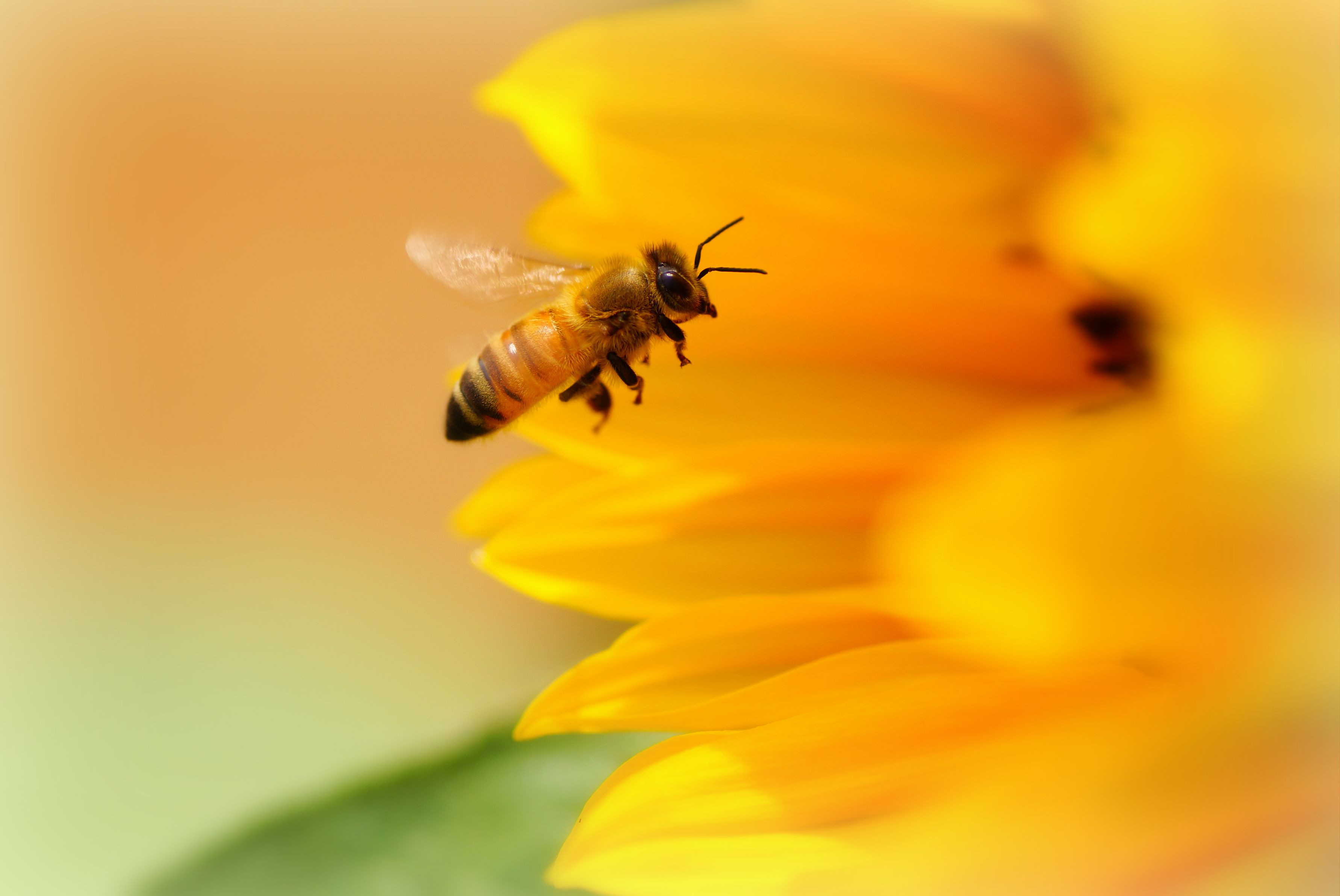 ヒマワリを訪れたセイヨウミツバチです。 (位置調整のため若干トリミングしてます)