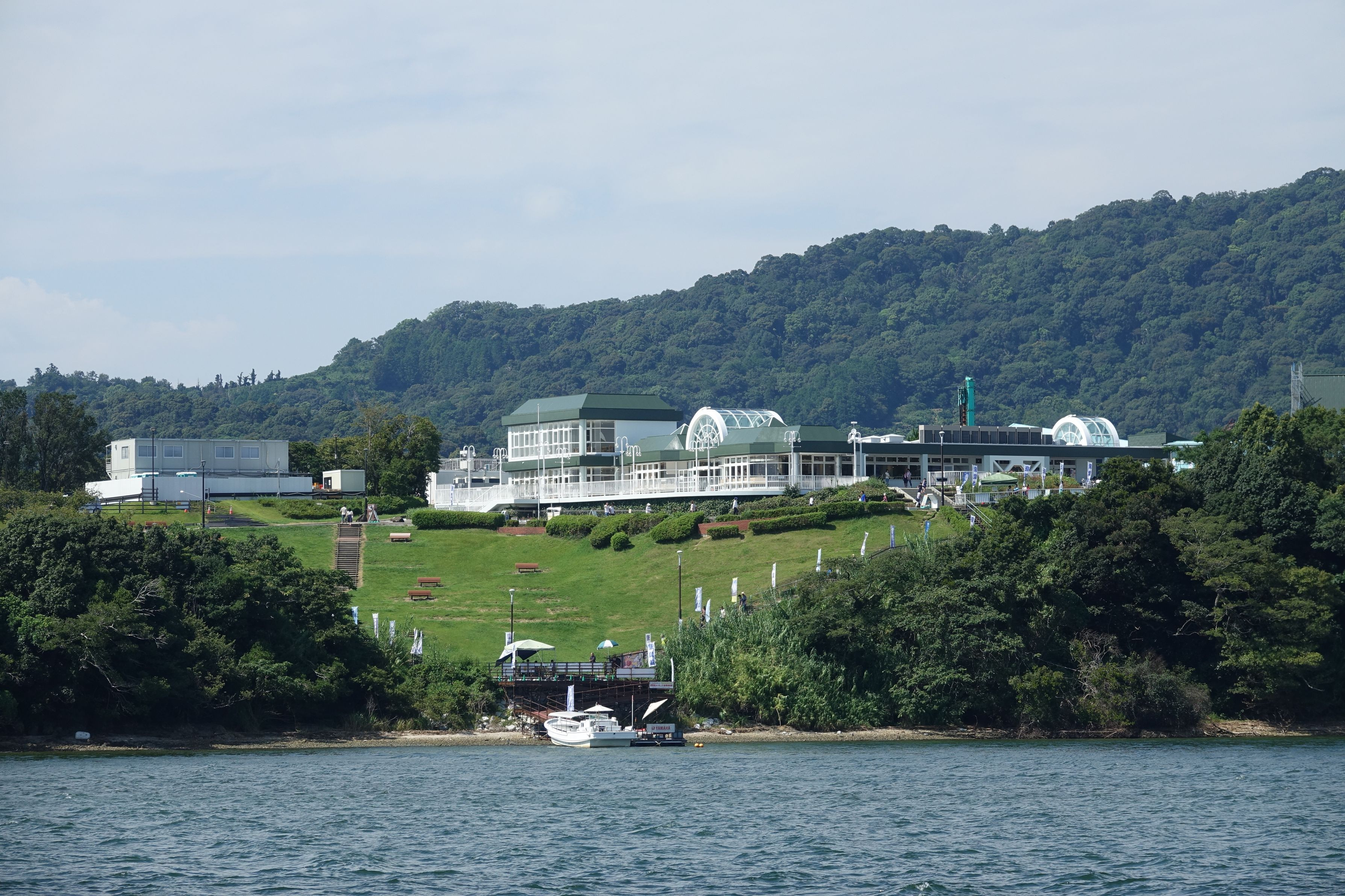 浜名湖上から撮った東名高速下り浜名湖SAです。