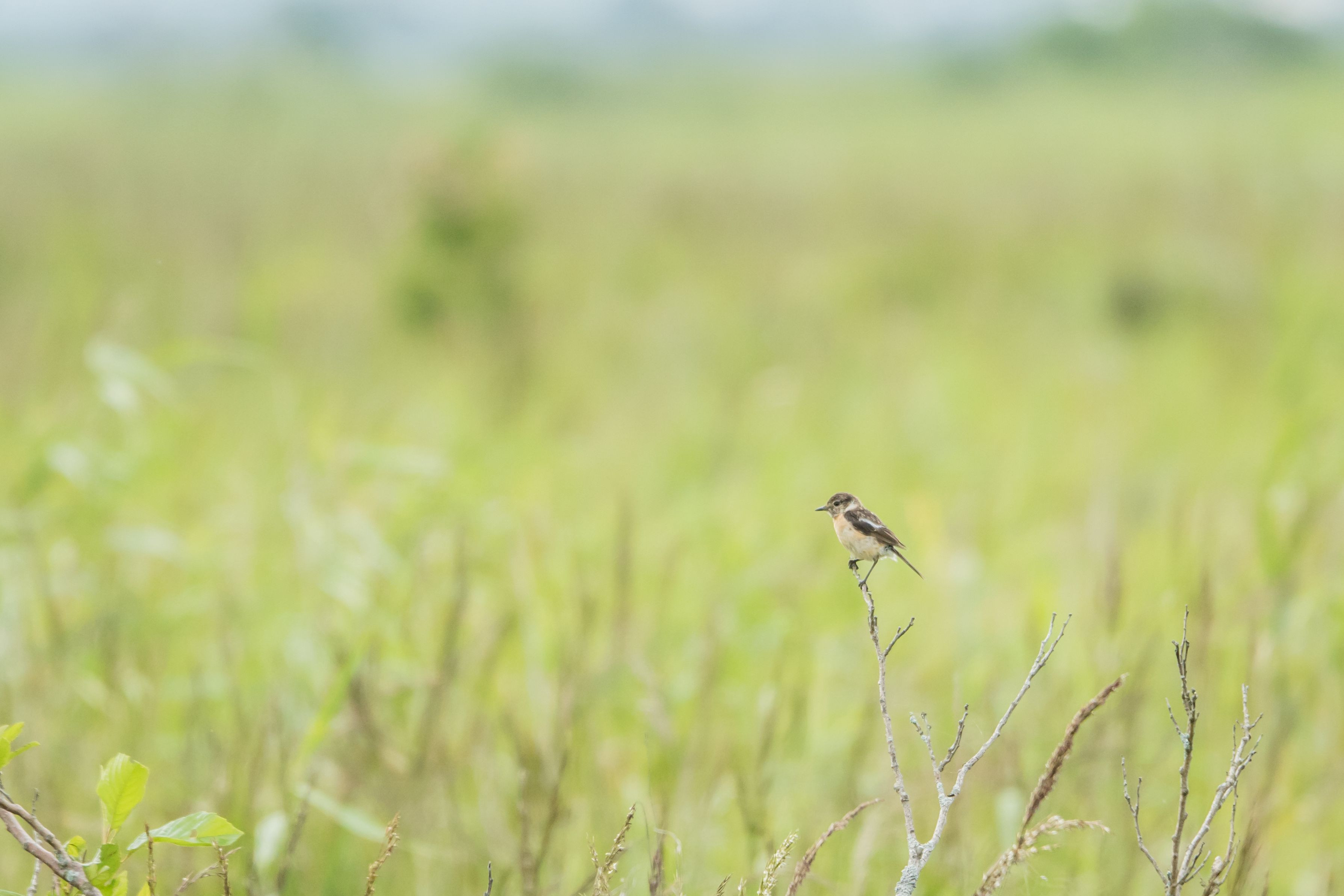 広大な大地にノビタキさんが一羽。 #ノビタキ#