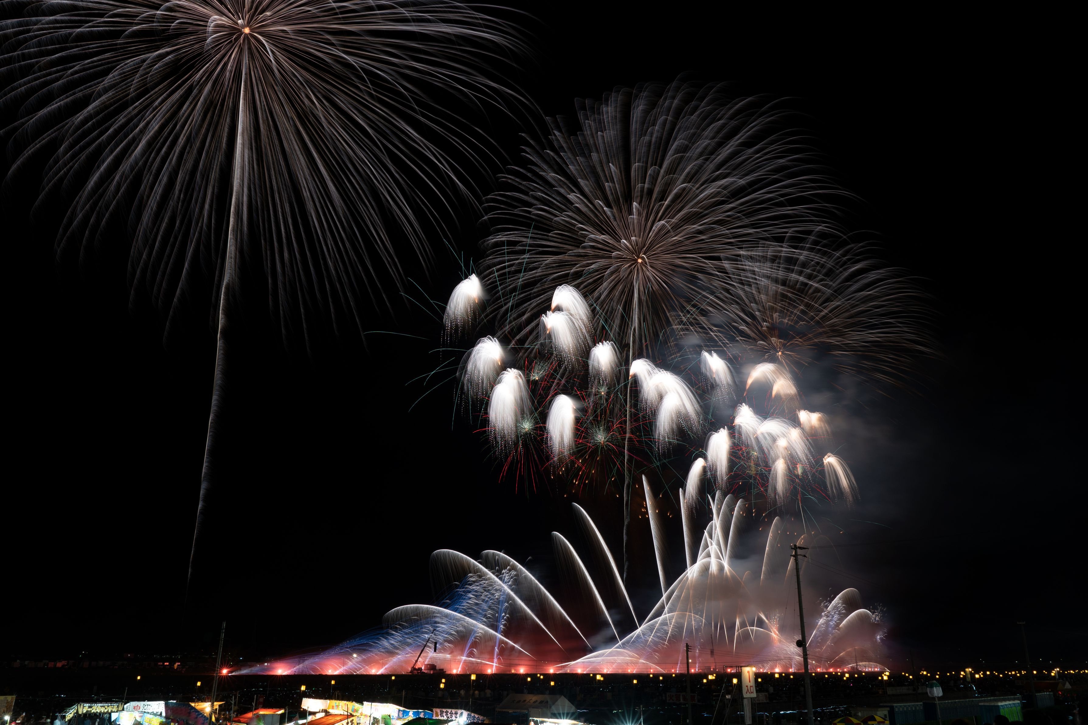 大曲の花火 初めての場所 どこに上がるのか分からないまま なんとか撮ってみました 合成してます