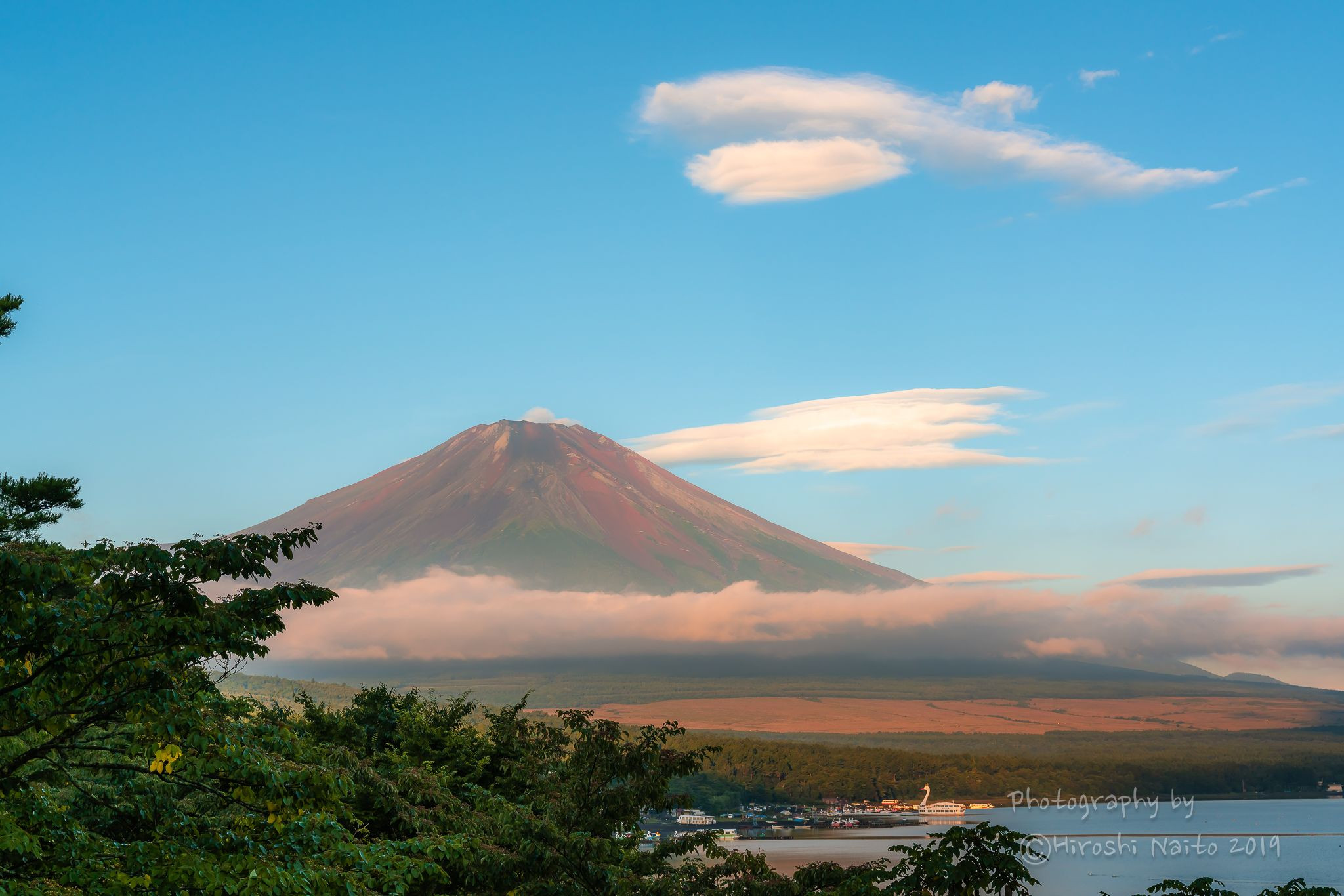 山中湖 山梨県南都留郡山中湖村 日の出までは雲の中に隠れていた富士山が、突然雲が晴れて姿を現しました。