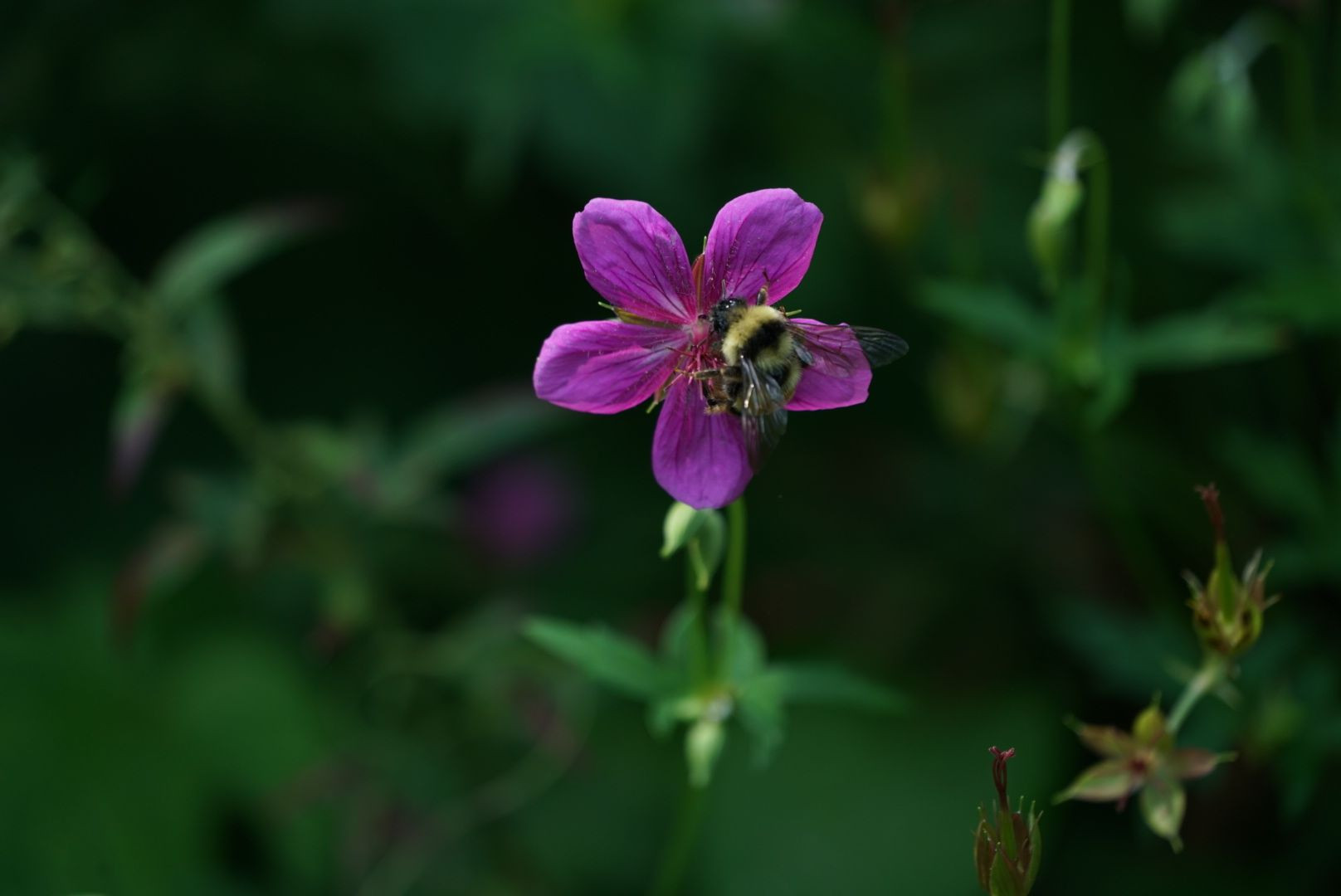 アサマフウロの蜜を吸うオオマルハナバチ