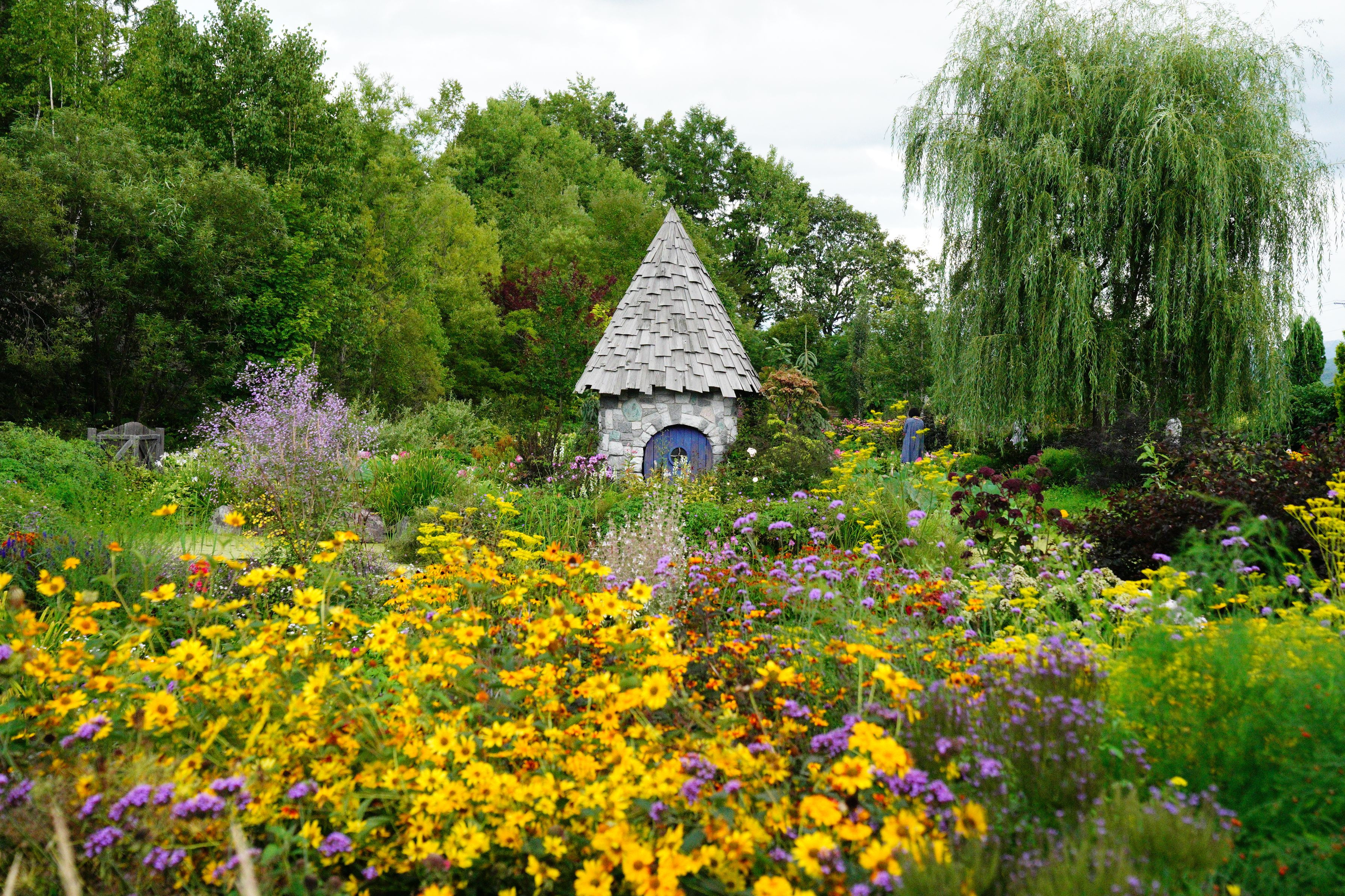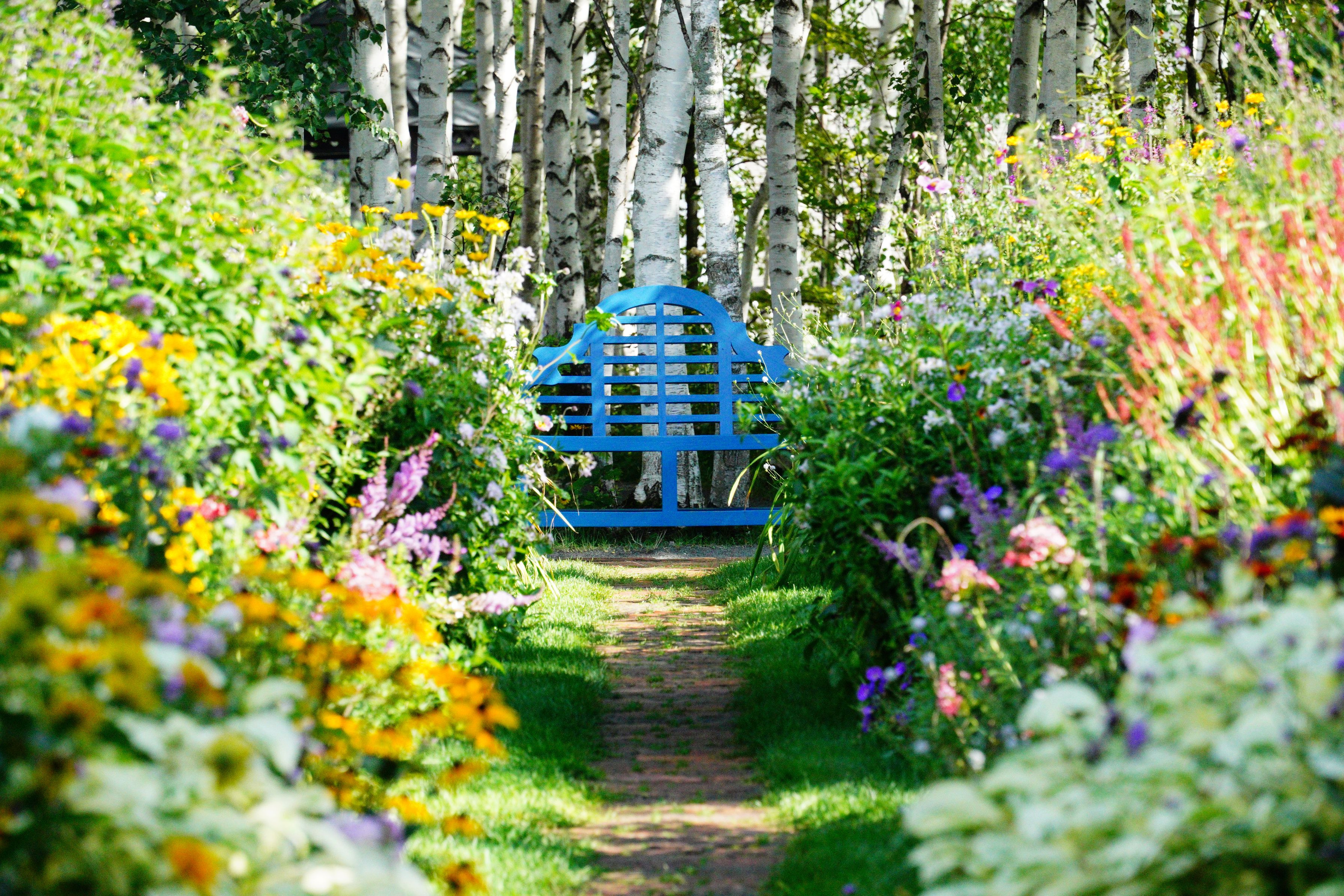 上野ファーム第二段です お花畑のなかに素敵なベンチがありました。