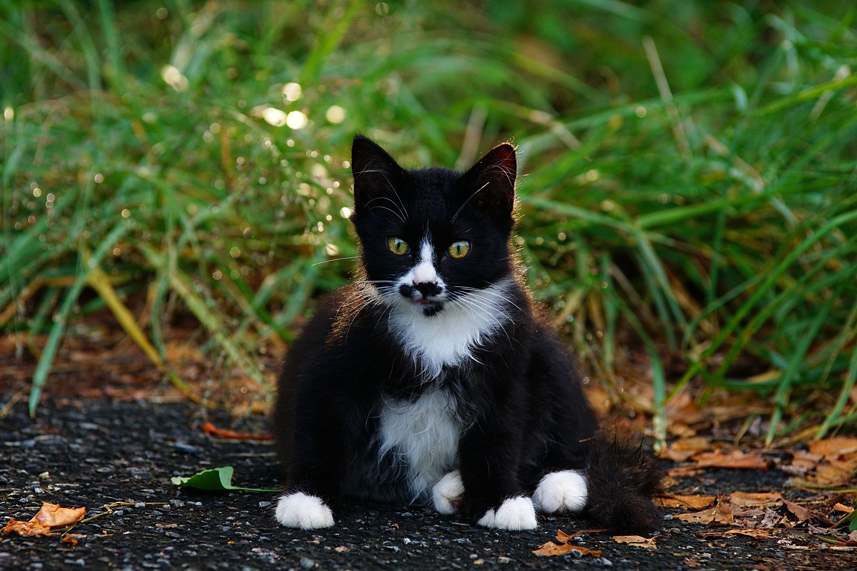 タキシードを着た生後半年くらいの子猫ちゃん。 この付近にはツヤツヤのタキシードを着た猫が数匹います。 この子はハナゲッチとモフモフさんの子どもなのかな?