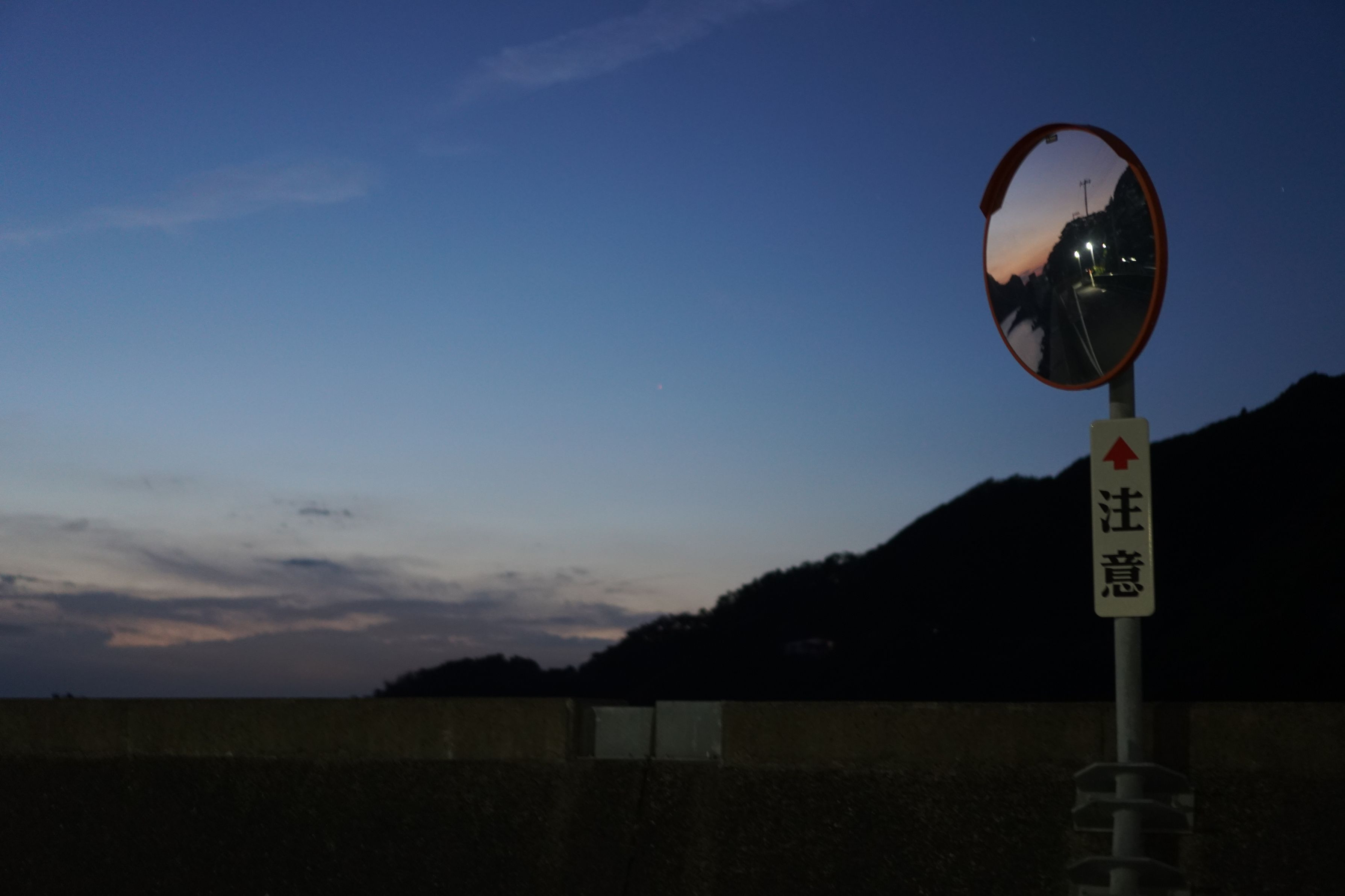 鏡を通して見える夕焼け空の世界は、どこか憧れを覚える光景でした。