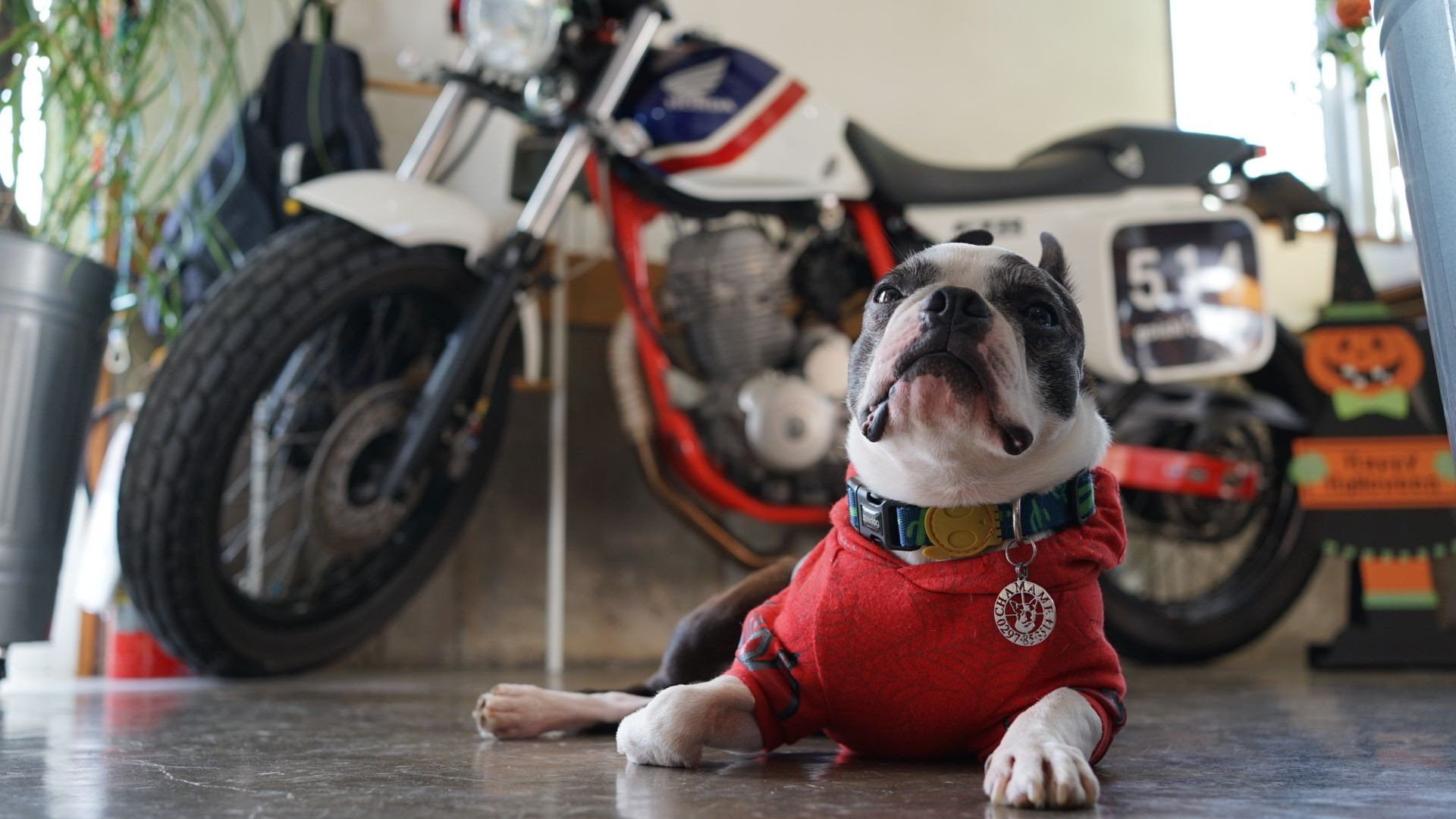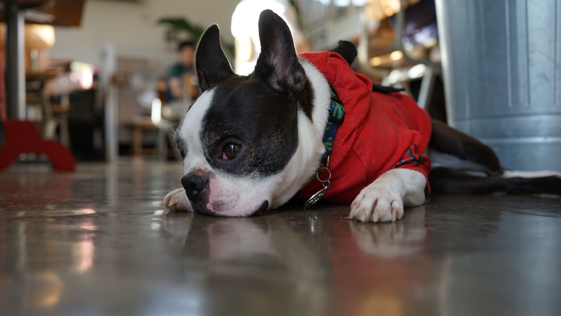 ご主人のお仕事が終わるまで、静かに待っている看板犬に出会いました。